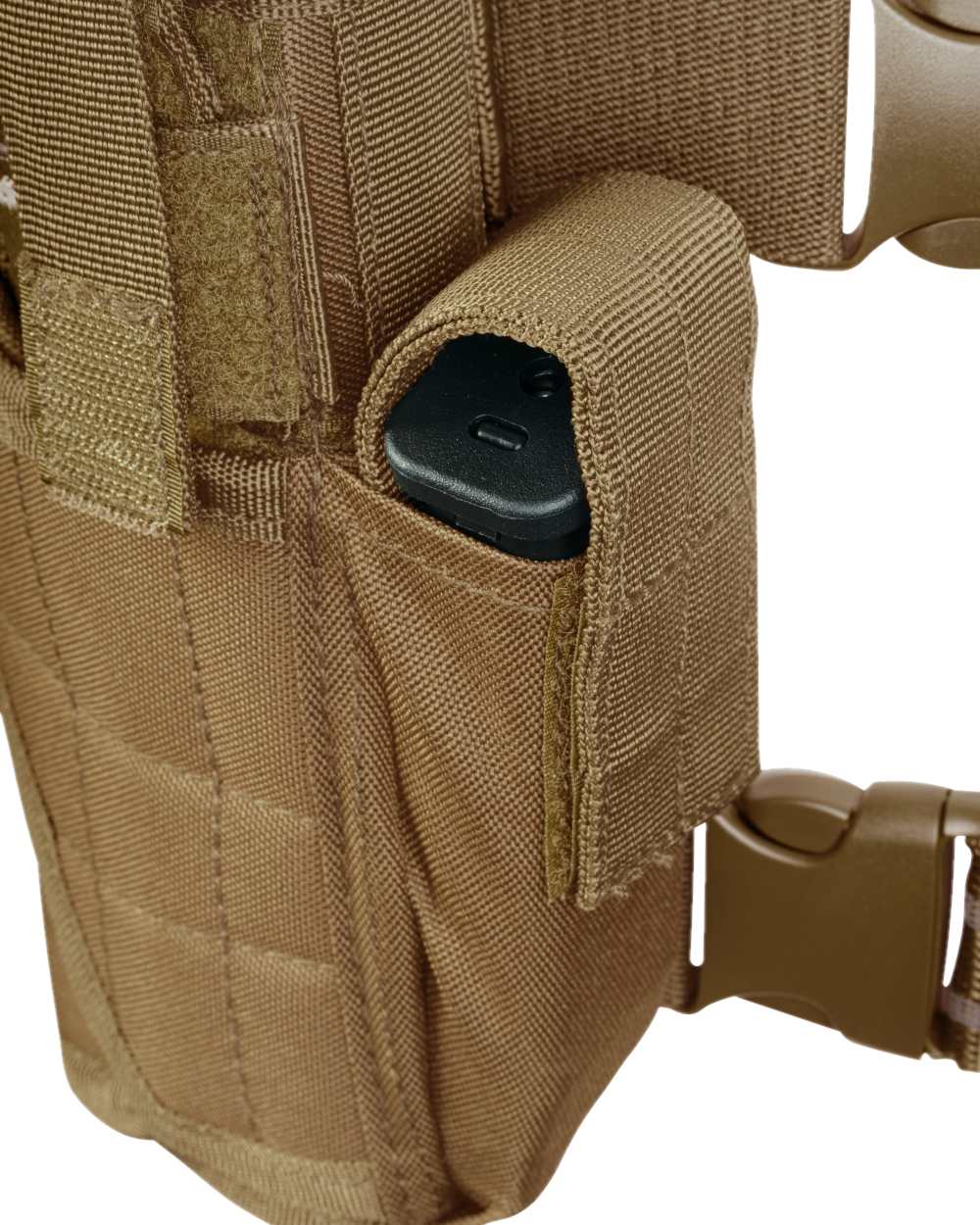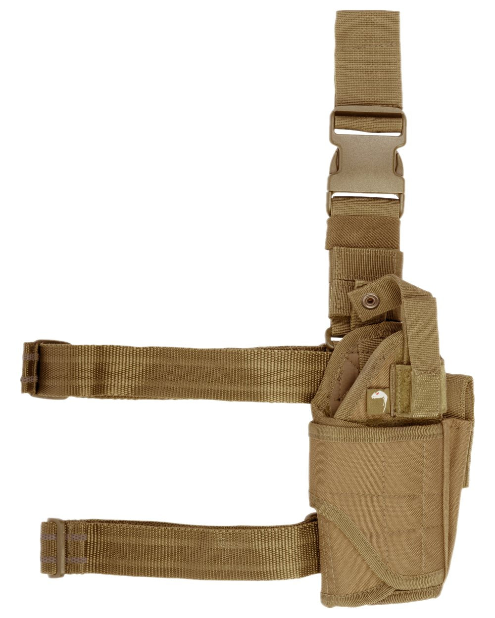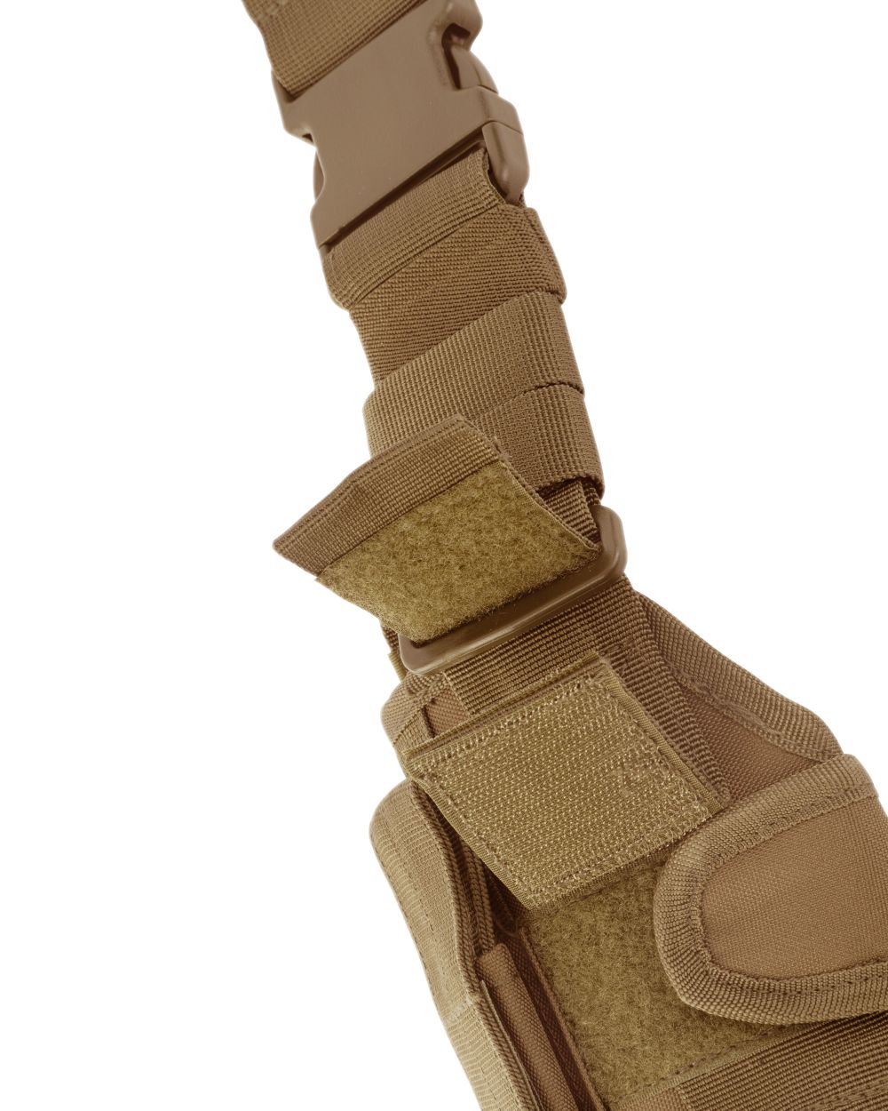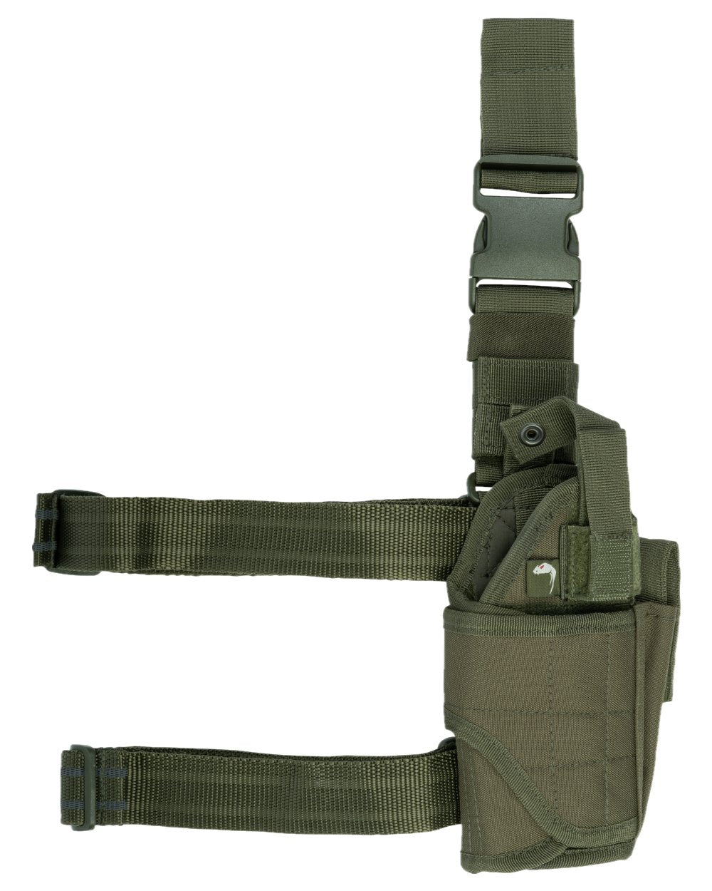 Using a leg holster to carry your sidearm is both practical and comfortable. The Viper Tactical Adjustable Holster is packed with features allowing you to fully customize it to your needs. Using hook and look adjustable straps on top and inside the holster you can adapt it to fit most of the popular pistol brands. The holster can be fitted using two adjustable wraparound leg straps and a belt strap with quick release buckle and hook and loop size adjustment. If needed the belt strap can be removed. On the front of the holster we added a pouch that can be used to carry one additional pistol magazine or small utilities including light sticks or a small torch. The pouch height can be adjusted using the removable hook and loop closure. The Viper Tactical Adjustable Holster is perfect for military enthusiasts, army and police forces as well as air soft and paintball players.