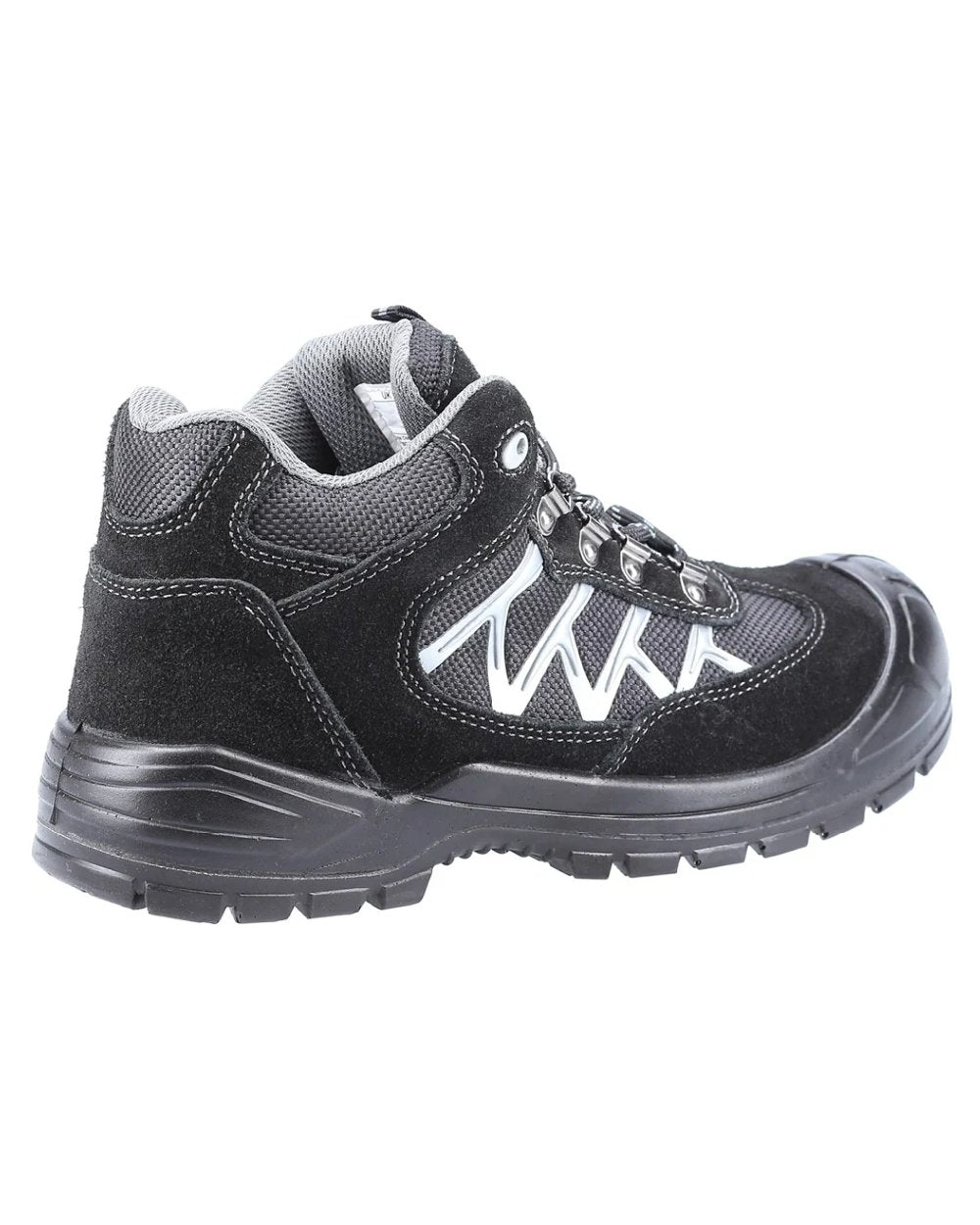 Lightweight safety hiker crafted with suede leather and breathable nylon mesh upper, injected PU scuff cap, steel toe, steel midsole and dual density PU outsole.