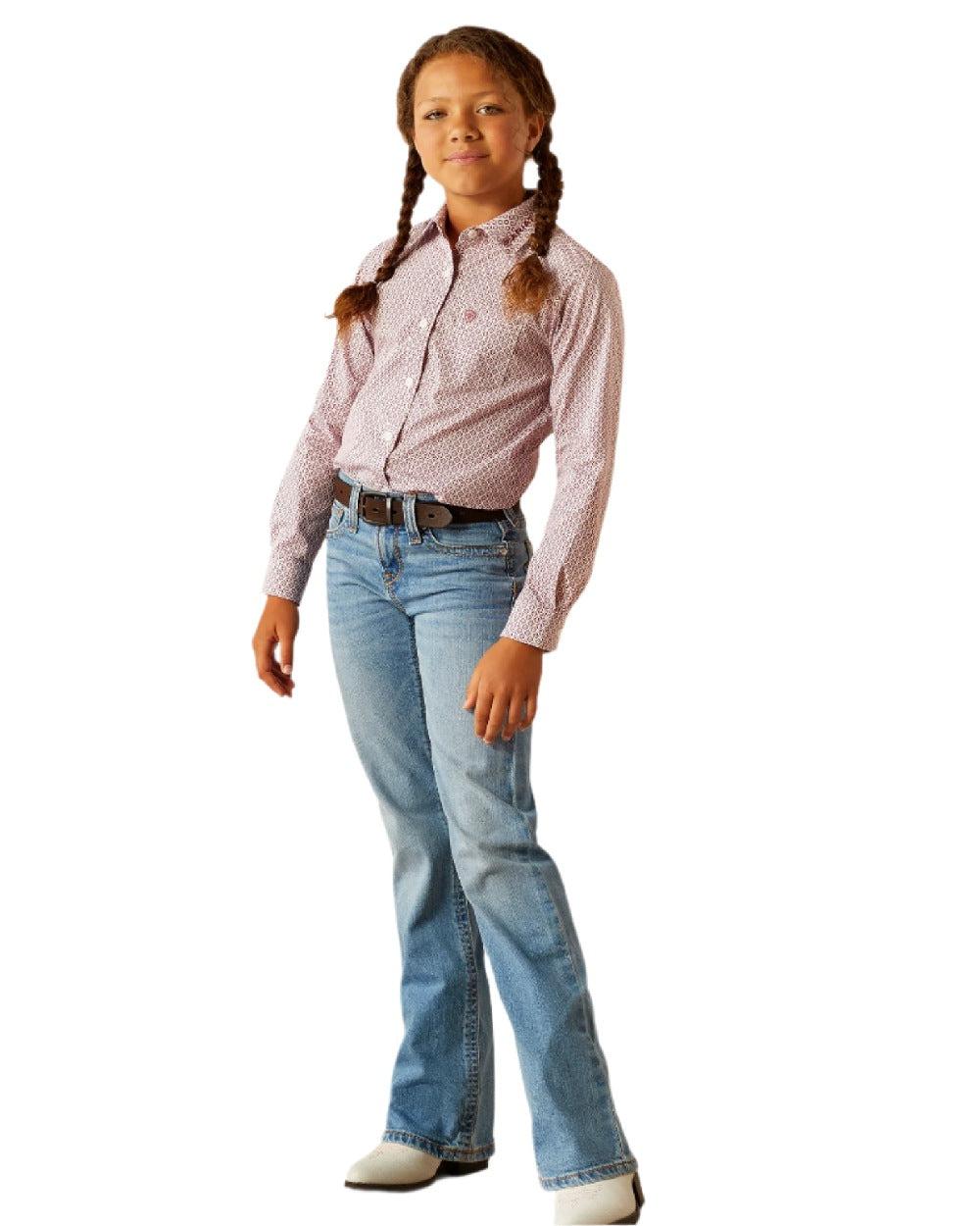 Every budding cowgirl needs a good button-up. This one mixes Western styling with a bold ombre pattern to create a shirt she'll wear from school to the stables.