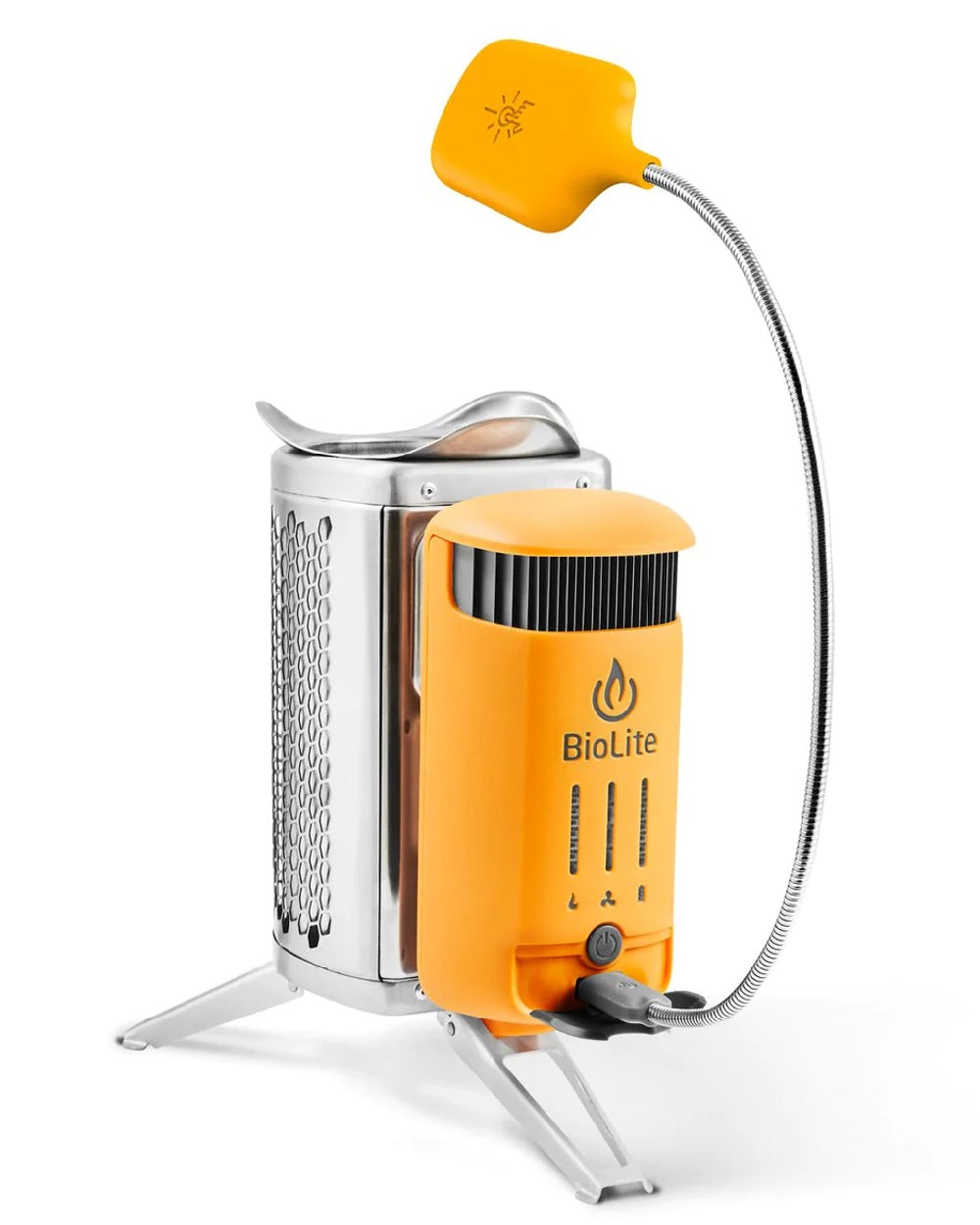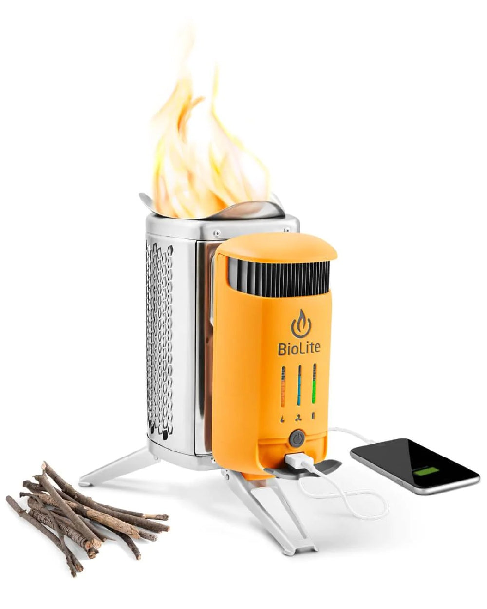 Turn fire into electricity with BioLite's award-winning stove. Patented combustion technology creates a vortex of smokeless flames for a portable campfire that can cook your meals and charge your gear, all at the same time. Leave the gas canisters behind and unlock the potential of the sticks and twigs around you.