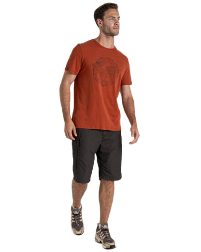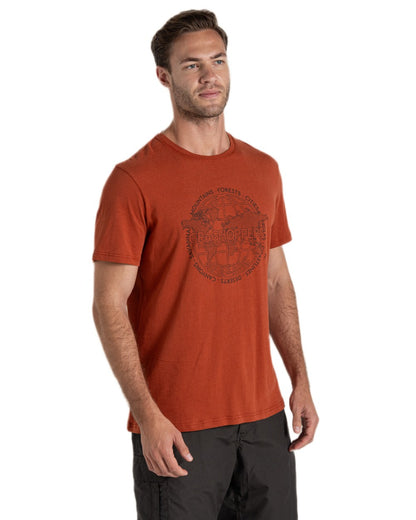 Red Beach Coloured Craghoppers Mens Lucent II Short Sleeved T-Shirt on White Background