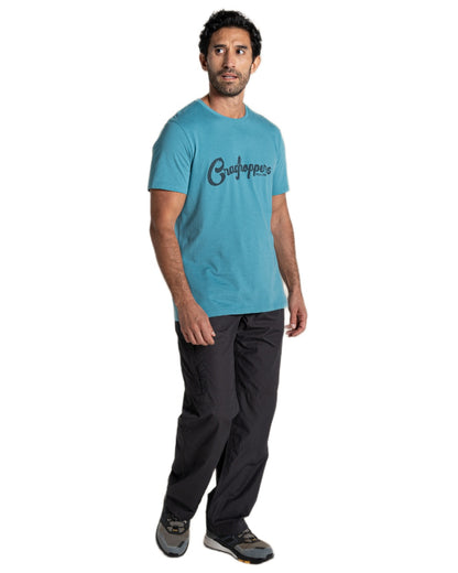 Blue Stone Coloured Craghoppers Mens Lucent II Short Sleeved T-Shirt on White Background