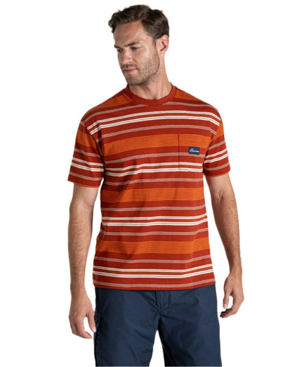 Red Beach Stripe Craghoppers Mens Pointer Short Sleeved T-Shirt on white background