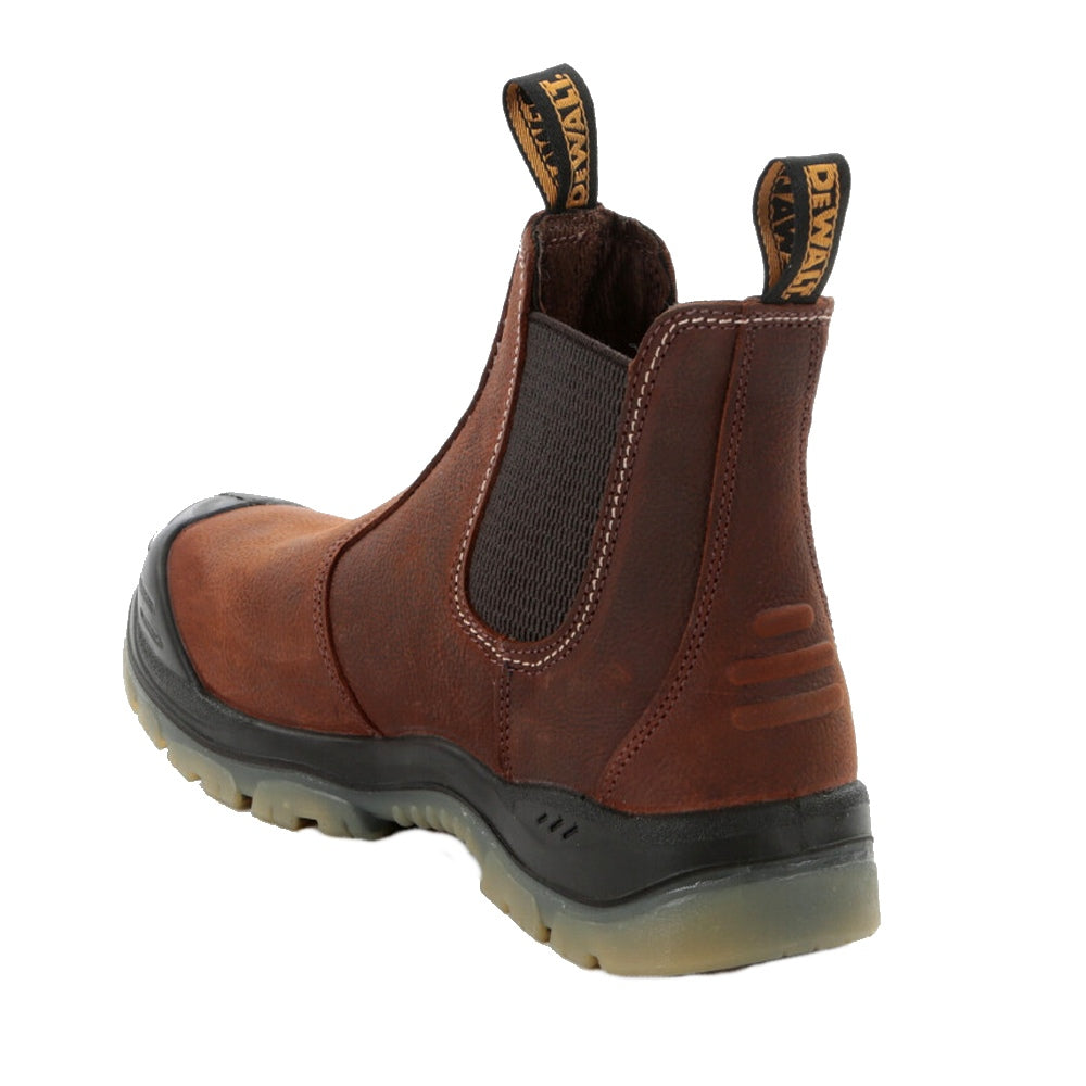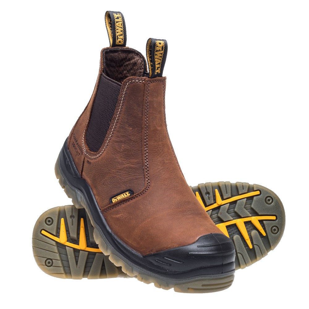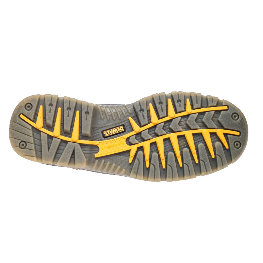 Full grain water resistant leather upper. Steel toe cap and steel midsole protection. PU comfort insole. TPU dual density outsole. Anti-scuff toe protection. A high quality DeWalt safety boot for a number of working conditions.