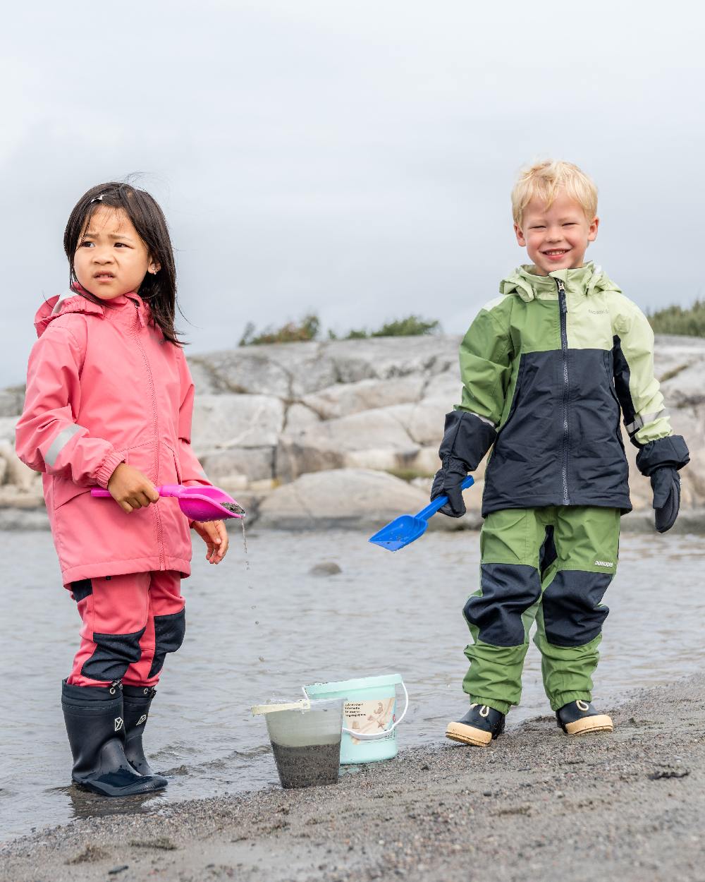 Pilvi is a versatile shell jacket for children, perfect for all seasons and outdoor activities. The jacket is both windproof and waterproof with taped seams and made from a breathable material, making it ideal for play and adventure in all weathers.