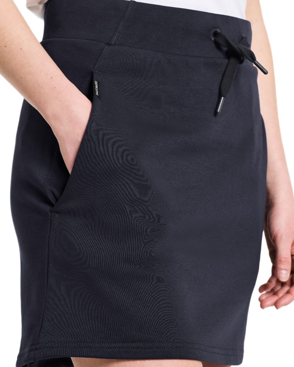 Hallo is a soft and comfortable skirt that is perfect for a sporty look with a pair of trainers. Made from a fabric of organic cotton and recycled polyester, it offers both style and comfort. The skirt has an adjustable waist with a drawstring and practical pockets at the front and back. With its 4-way stretch and brushed inside, it is a key piece in the wardrobe for any occasion.