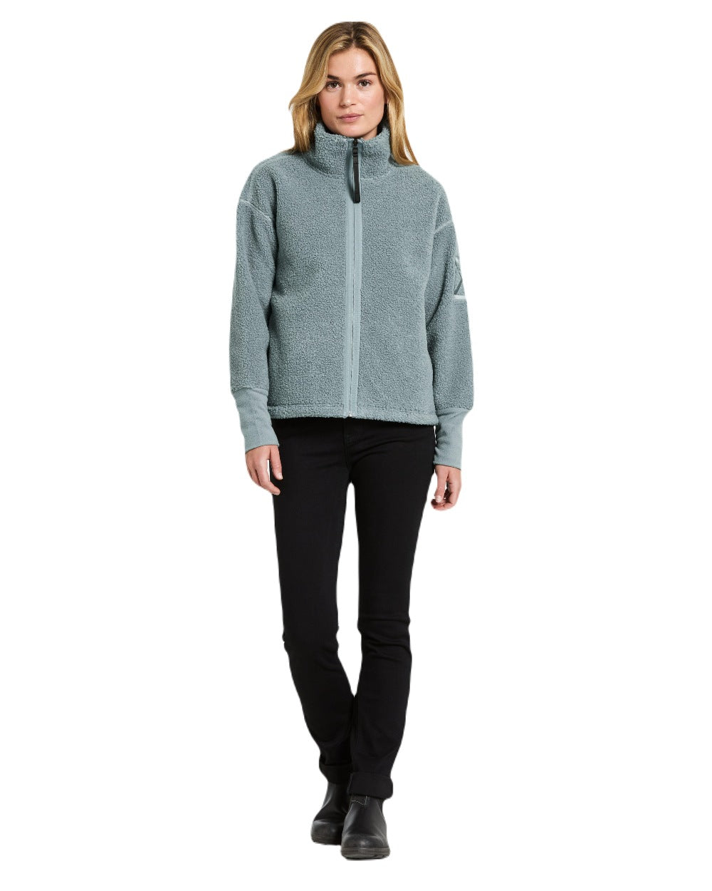 Mella is a warm and cosy pile jacket with long cuffs. Wear it as a midlayer or as a jacket, it is bounded with fleece backing. It has a logo embroidery on the left arm.