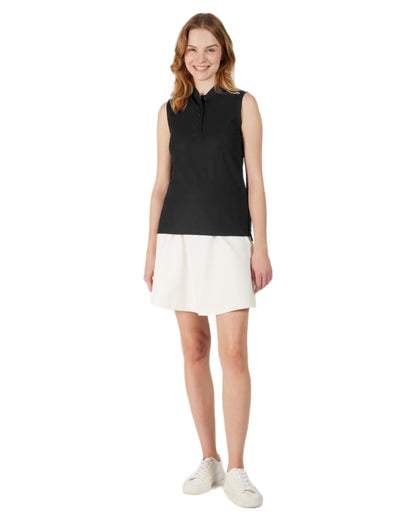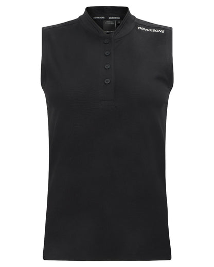 Black coloured Didriksons Womens Nikki Sleeveless Polo T-Shirt on white background