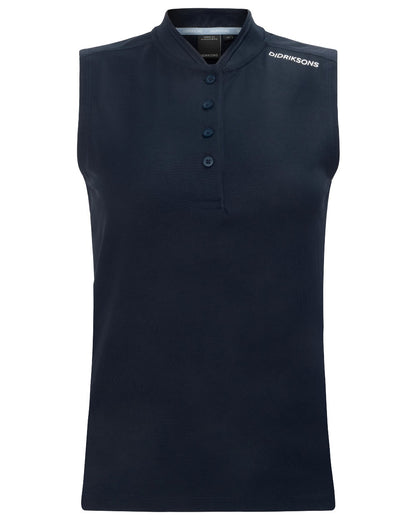 Dark Night Blue coloured Didriksons Womens Nikki Sleeveless Polo T-Shirt on white background