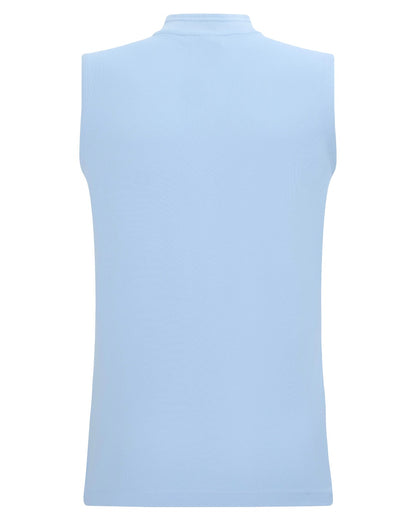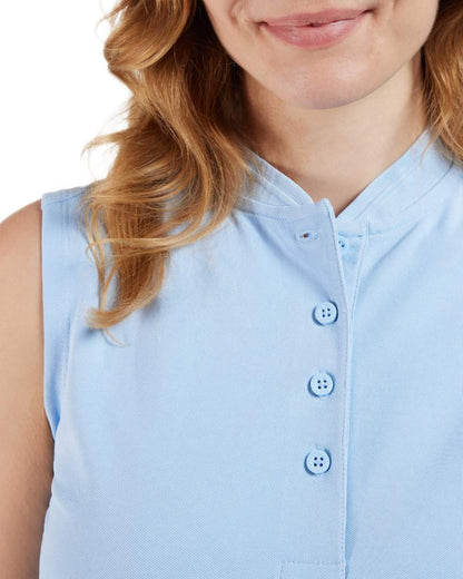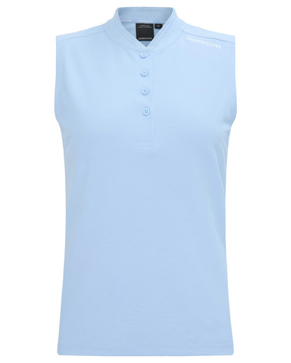 Sea Blue coloured Didriksons Womens Nikki Sleeveless Polo T-Shirt on white background