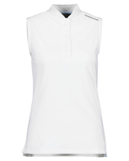 Snow White coloured Didriksons Womens Nikki Sleeveless Polo T-Shirt on white background