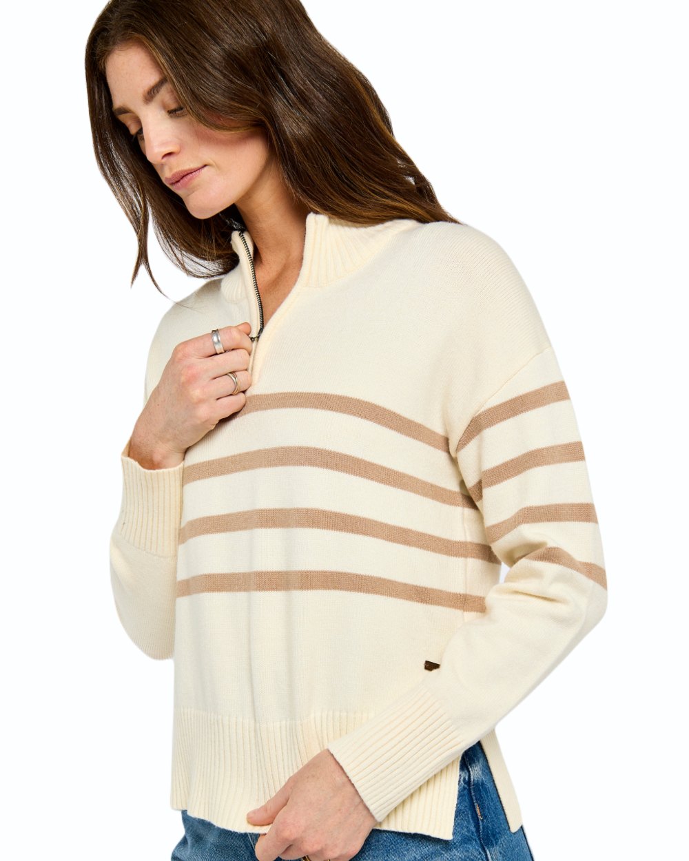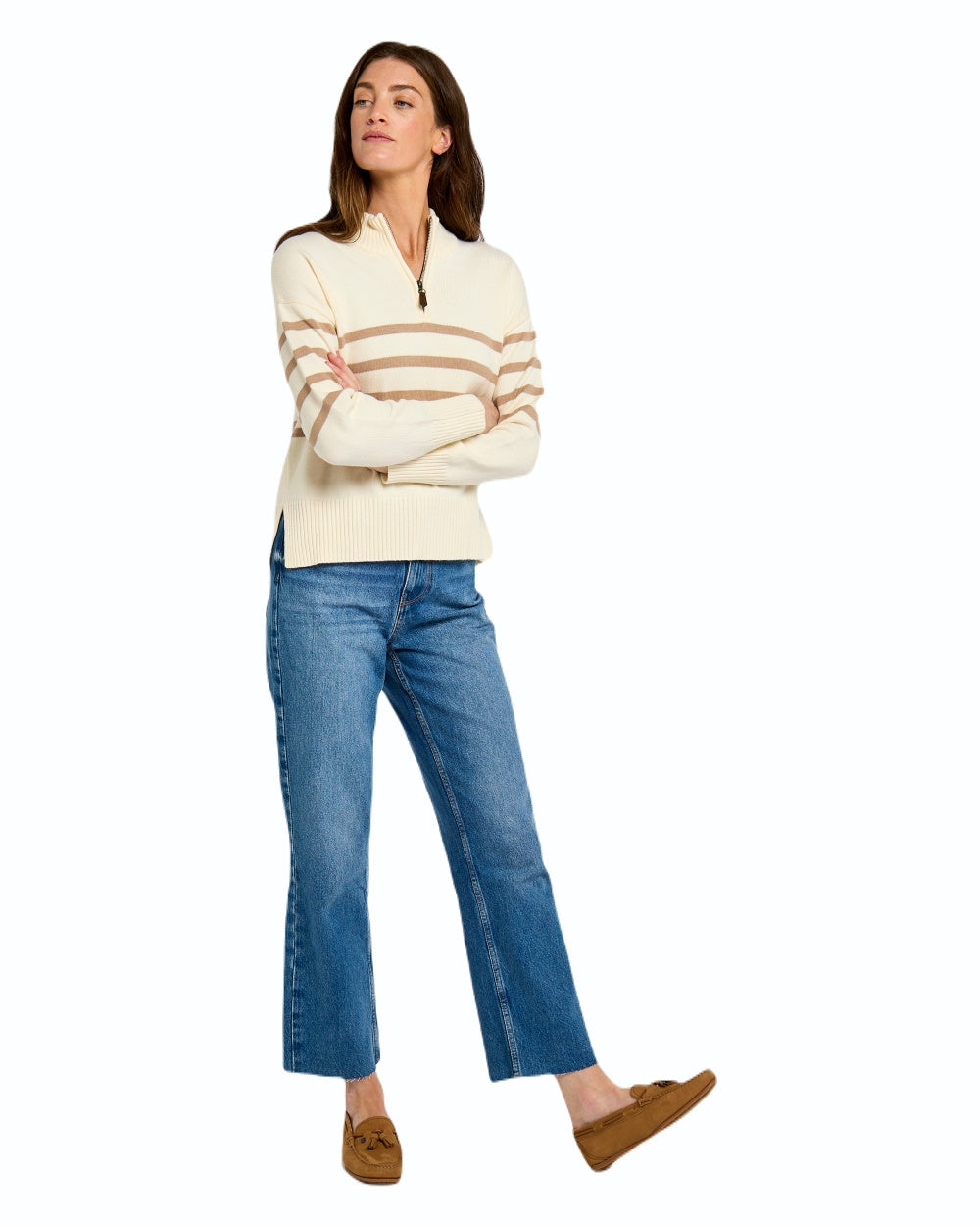 Dubarry Fonthtill sweater is lightweight and wonderfully soft, made with a combination yarn designed to be soft to the touch, hold its shape well and be machine washable. The crisp contrasting stripes have a distinct nautical feel, very at home by the sea, but bring a fresh spring touch wherever you take it. The ribbed collar can be zipped up or down giving you a light spring layer that’s also cosy on cooler spring evenings.