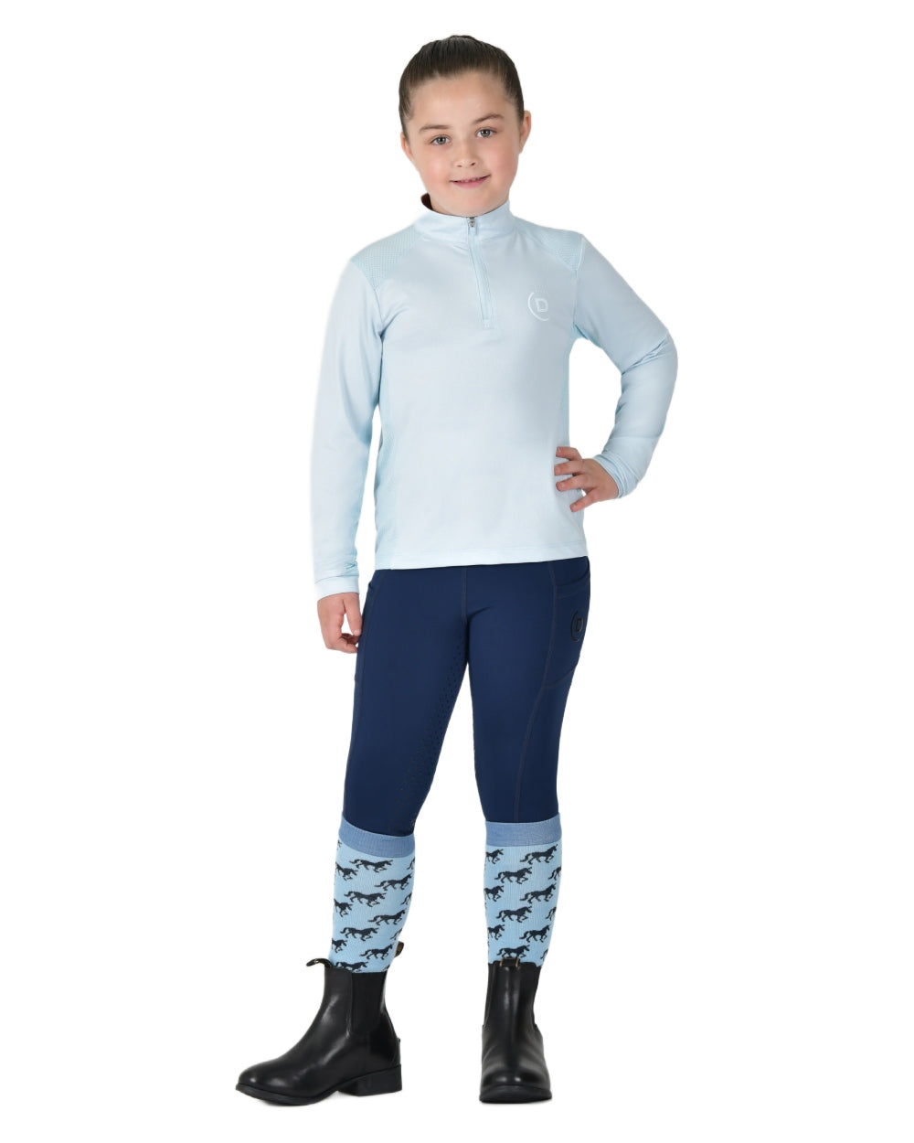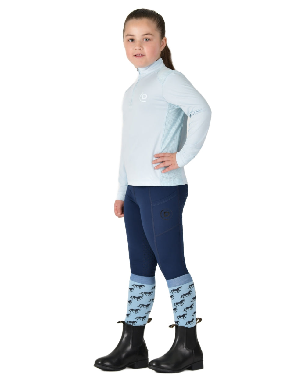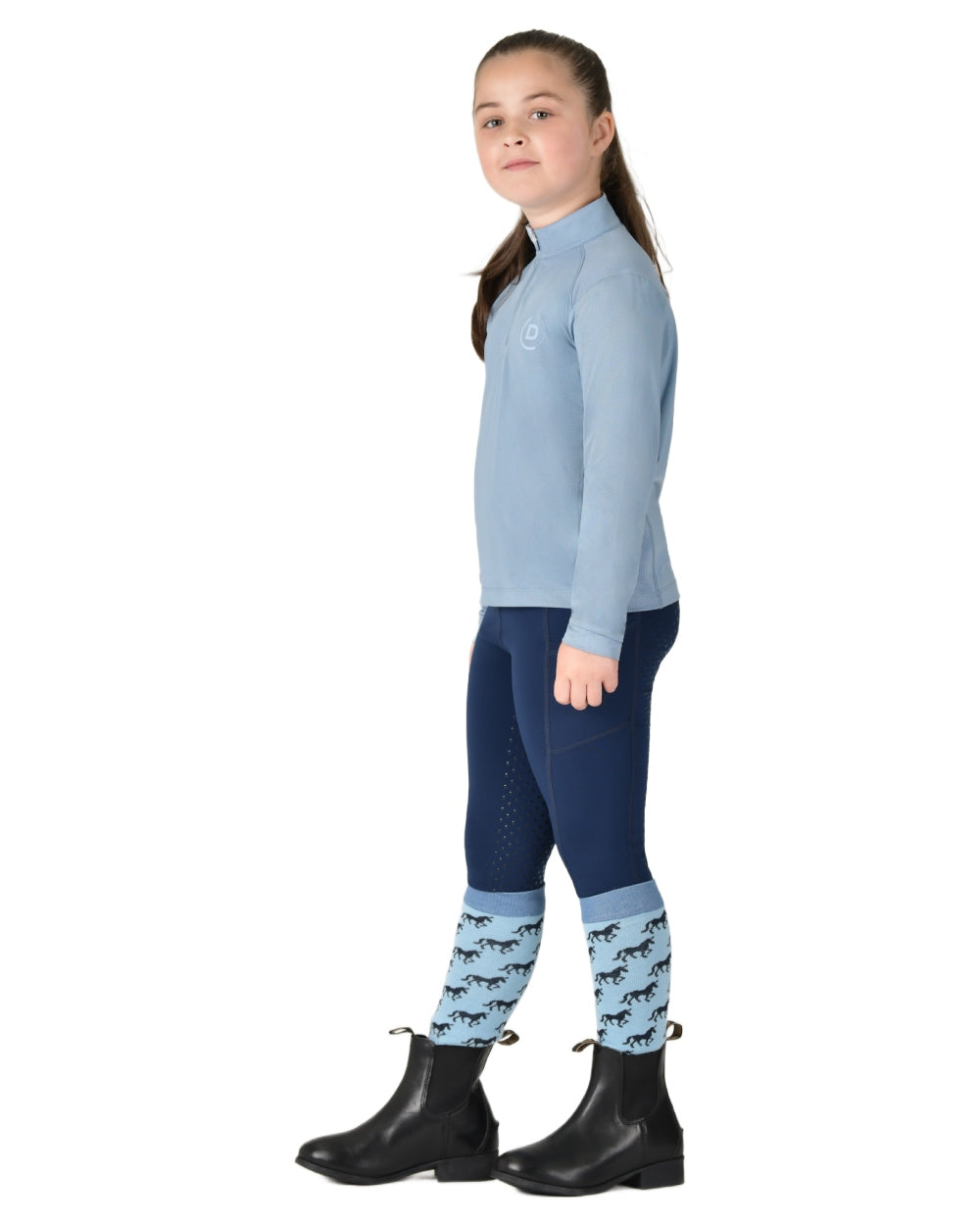 Tough against the elements and soft on you, meet the Dublin Kids Breathable Long Sleeve Riding Top. This relaxed fit style top features Comfort Dry Technology that provides moisture control keeping you comfortable all day, making this perfect to wear as a layering option or as a stand alone piece. Perforated panels placed where you need them most, enhance breathability and airflow as well as adding style and offers UPF 50+ sun protection. This long sleeve top has a 1/4 zip placket and subtle Dublin 'D' silicone branding on the left chest.