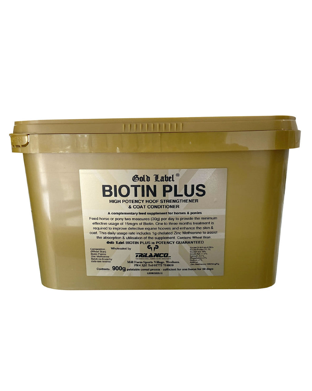 Biotin, zinc and amino acid methionine combine to maintain the existing 15mg biotin application by acting as a hoof conditioner, also enhancing the condition of the skin and coat. Feed daily for two months prior to and throughout the working season.