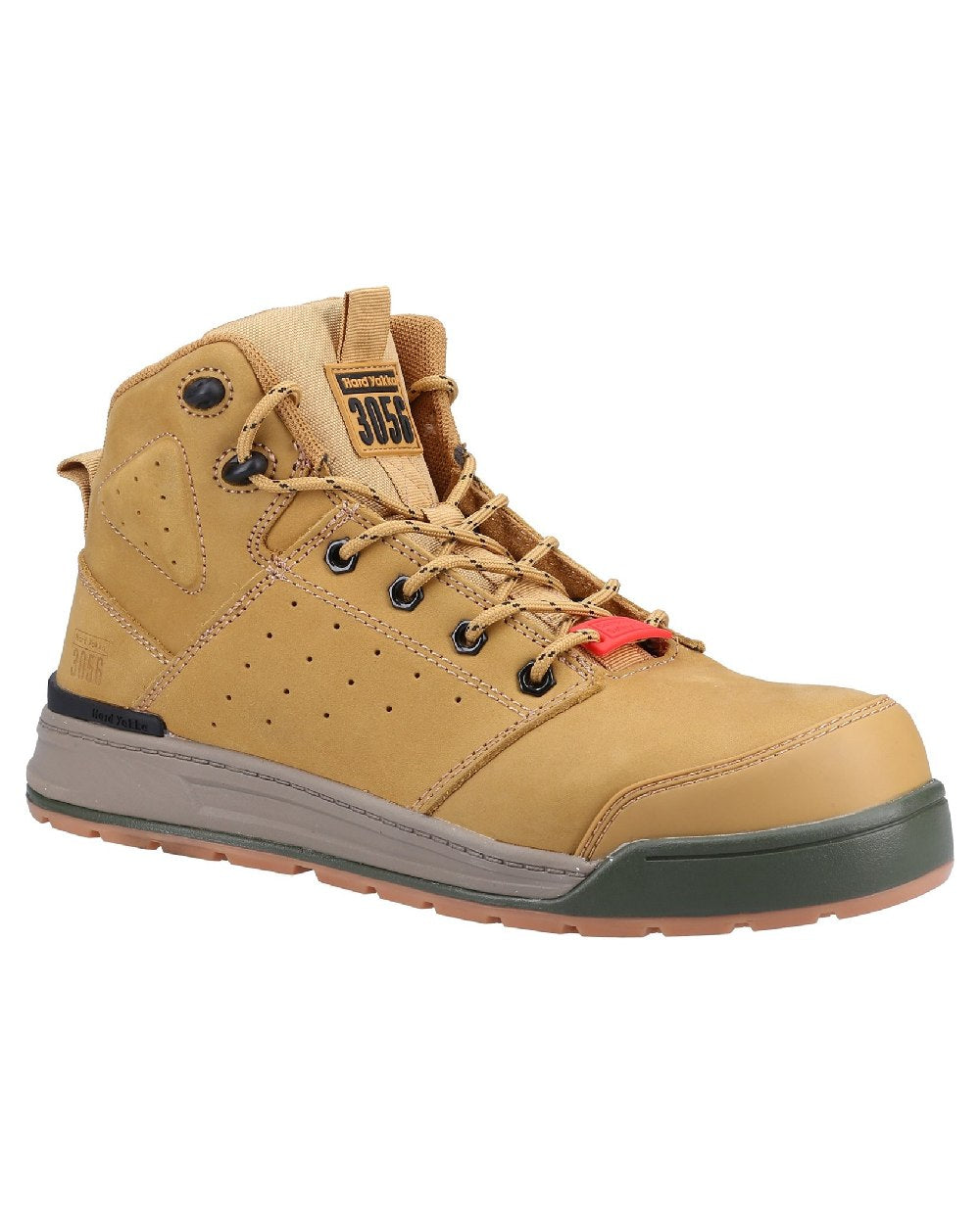Introducing the best-selling 3056 Composite Toe Cap Boots featuring a 300-degree heat-resistant and anti-penetration, SRC slip-resistant outsole. Built with comfort and stability in mind, these men's work boots have a cushioning memory foam footbed, a flexible neoprene 'hoodie' at the mouth of the boot for anti-rub protection, and a shock-absorbing Phylon midsole to provide energy rebound. Committed to a more sustainable future, Global Recycled Standard-certified recycled materials are utilised without compromising on performance. These safety boots are ideal for light industrial, warehousing, transport, construction, and general trade.