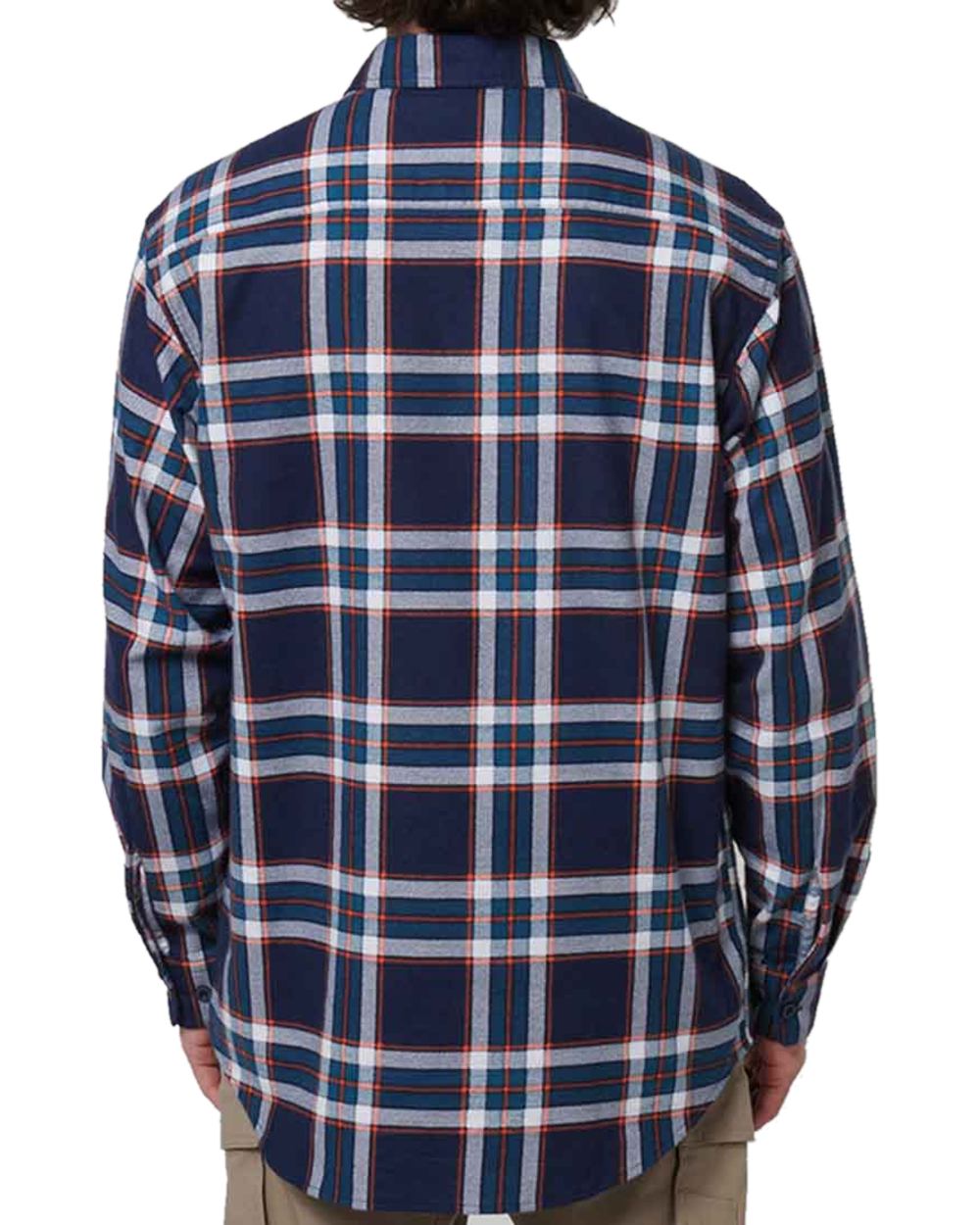 Navy Coloured Hard Yakka Mens Lightweight Check Flannel Shirt on Outdoor Background