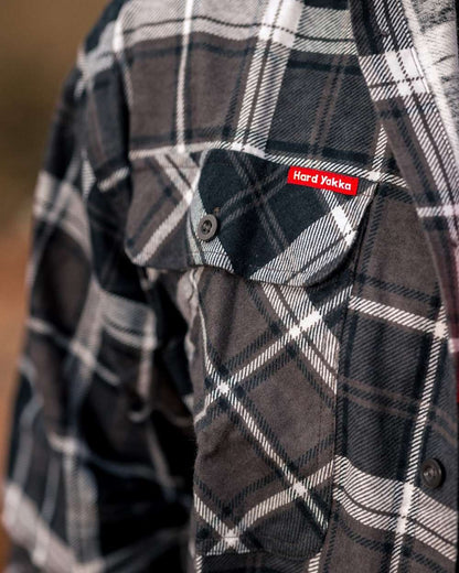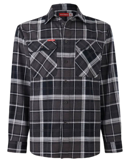 Charcoal Coloured Hard Yakka Mens Lightweight Check Flannel Shirt on White Background