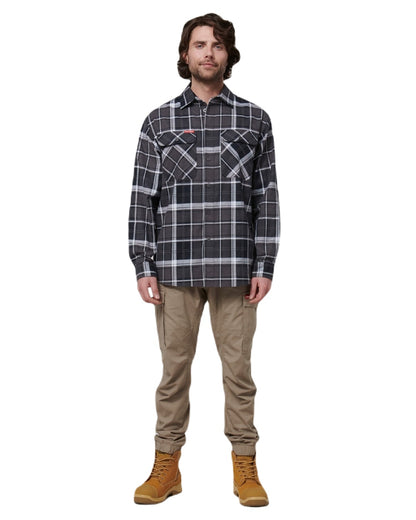 Charcoal Coloured Hard Yakka Mens Lightweight Check Flannel Shirt on Construction Background