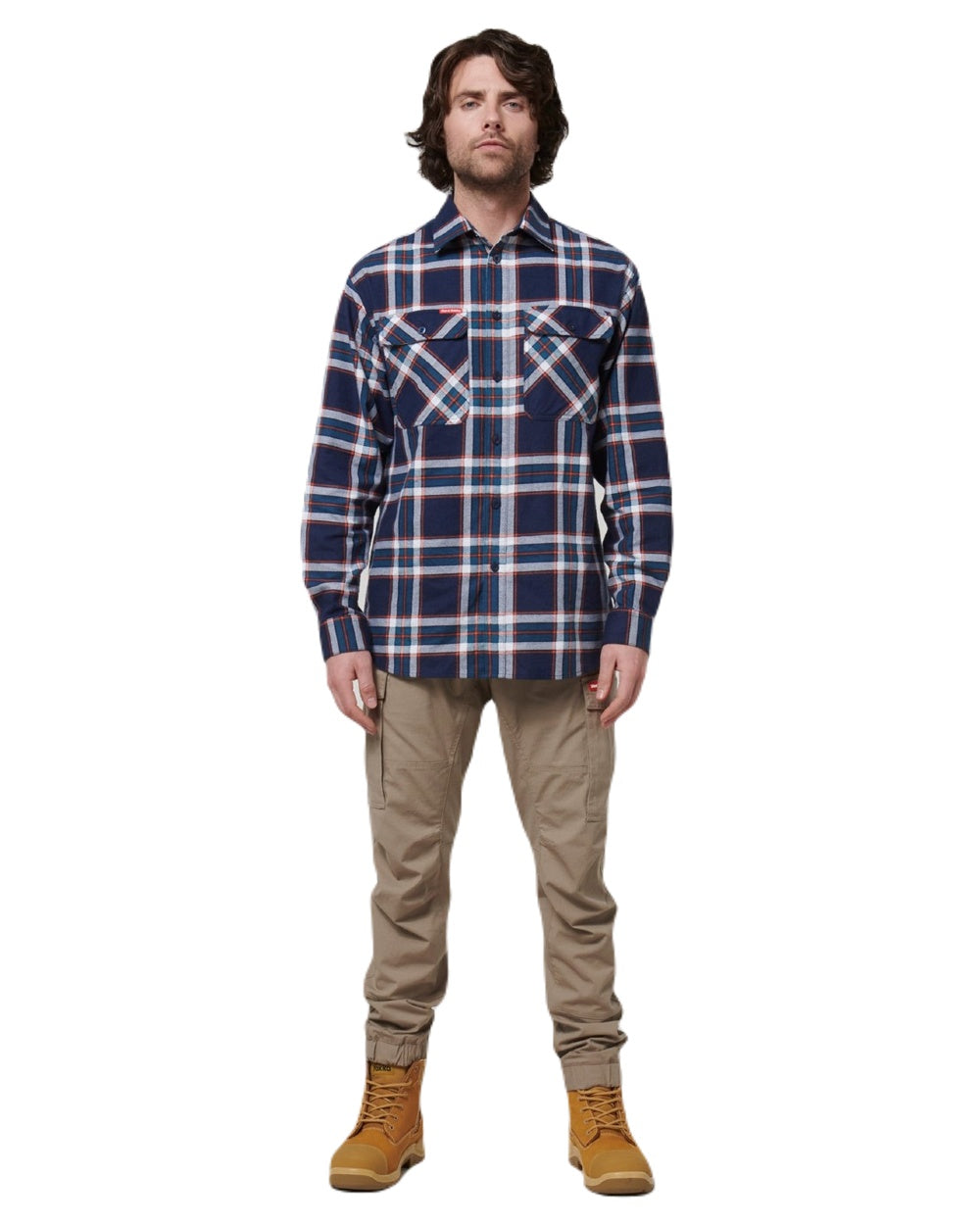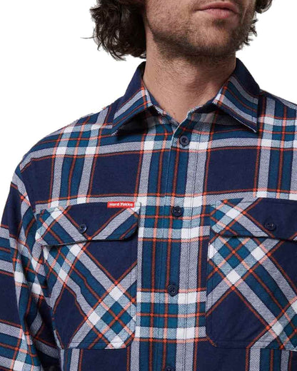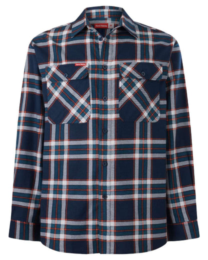 Navy Coloured Hard Yakka Mens Lightweight Check Flannel Shirt on White Background