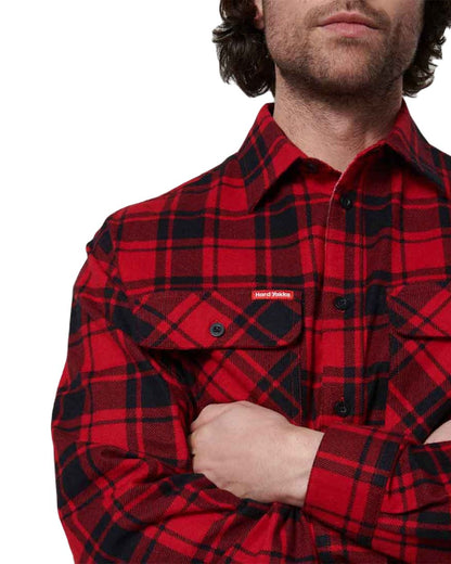 Red Coloured Hard Yakka Mens Lightweight Check Flannel Shirt on White Background