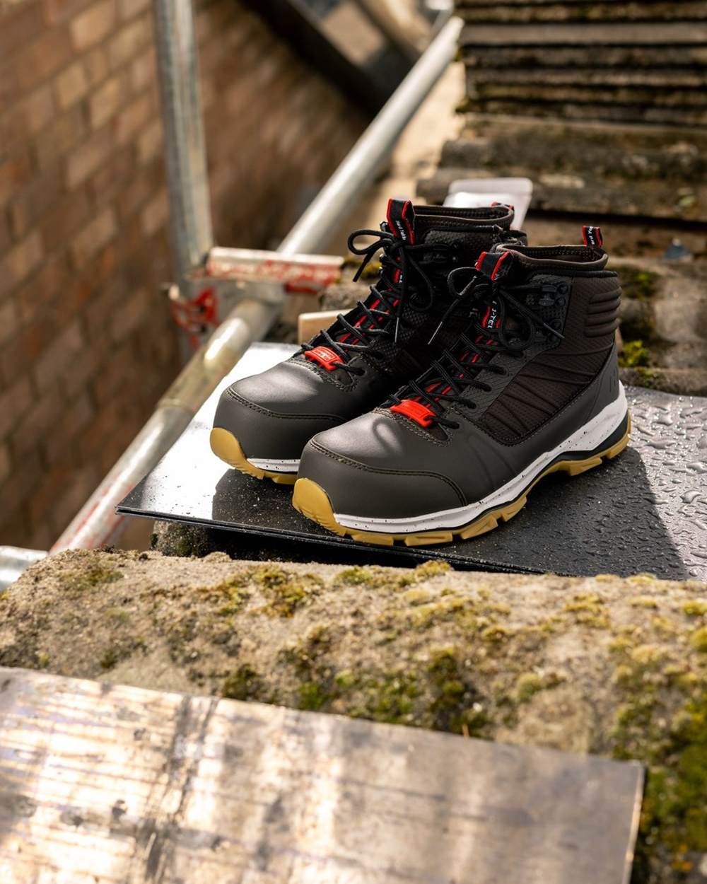 Hard Yakka's lightest ever safety boot, featuring a carbon nanofiber safety cap which is 50% lighter than steel and 40% lighter than composite toe caps, with no compromise on protection. Designed with an internal gaiter, this prevents debris from falling inside the work boot. Recycled REPREVE® linings made from post-consumer plastic bottles means sustainability is built into every pair.