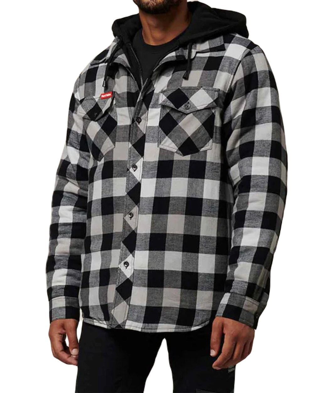 Grey Coloured Hard Yakka Mens Quilted Flannel Shacket on White Background