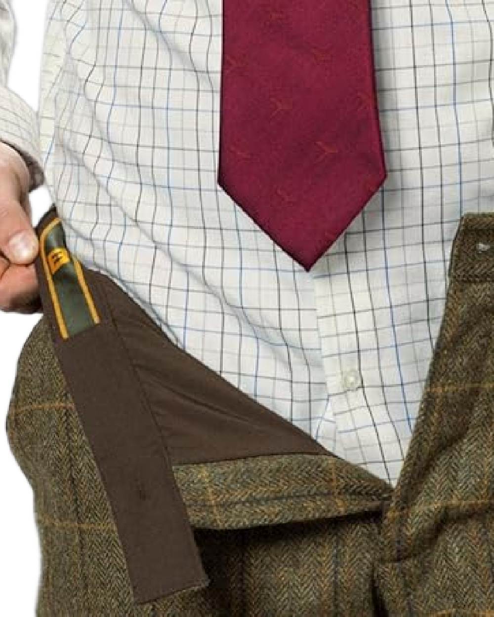 With the windproof and waterproof Gore-Tex membrane, you are kept dry and comfortable throughout wet weather. This is complemented by the anti-slip waistband for a comfy fit, the adjustable leg hems to fit nicely with your hunting boots or wellies, and smart tweed checks that mean you always look the part.