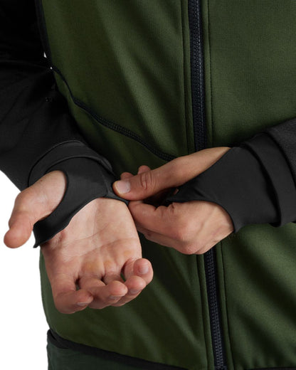 A high collar protects the neck from nasty chills and at the same time, the thumb-holes at the cuffs keep the hands warm and snug. A two-way front zip is a handy extra.