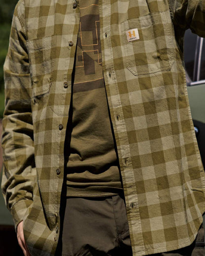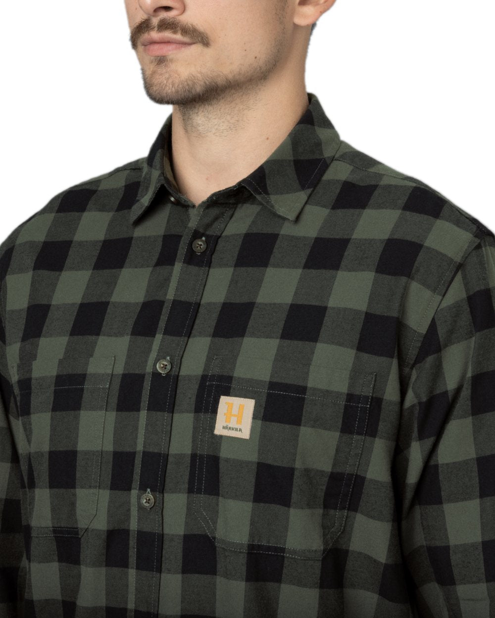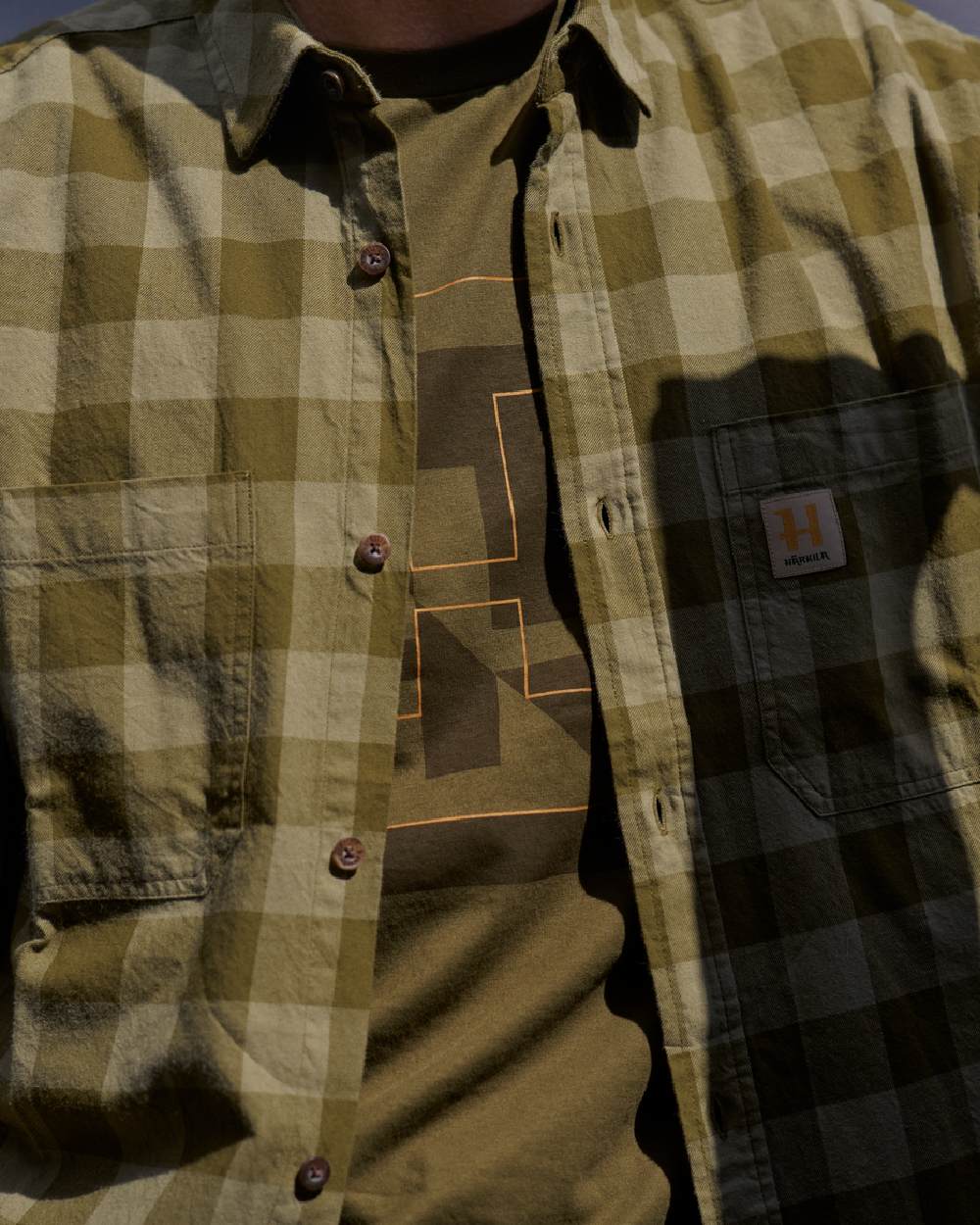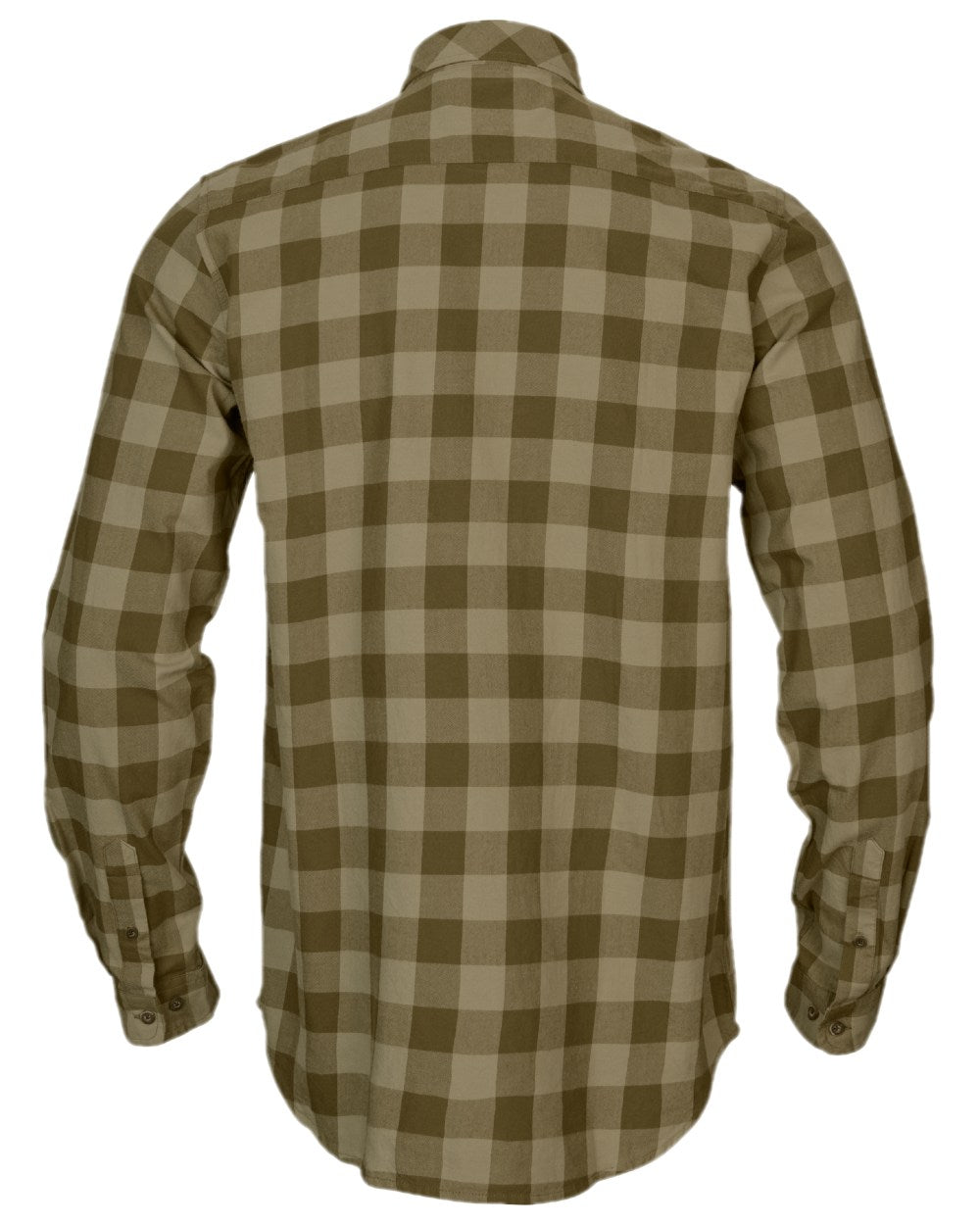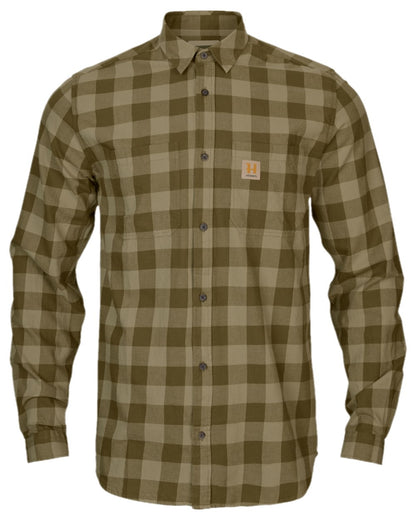Dark Olive Check Coloured Harkila Scandinavian Long Sleeve Shirt on white background