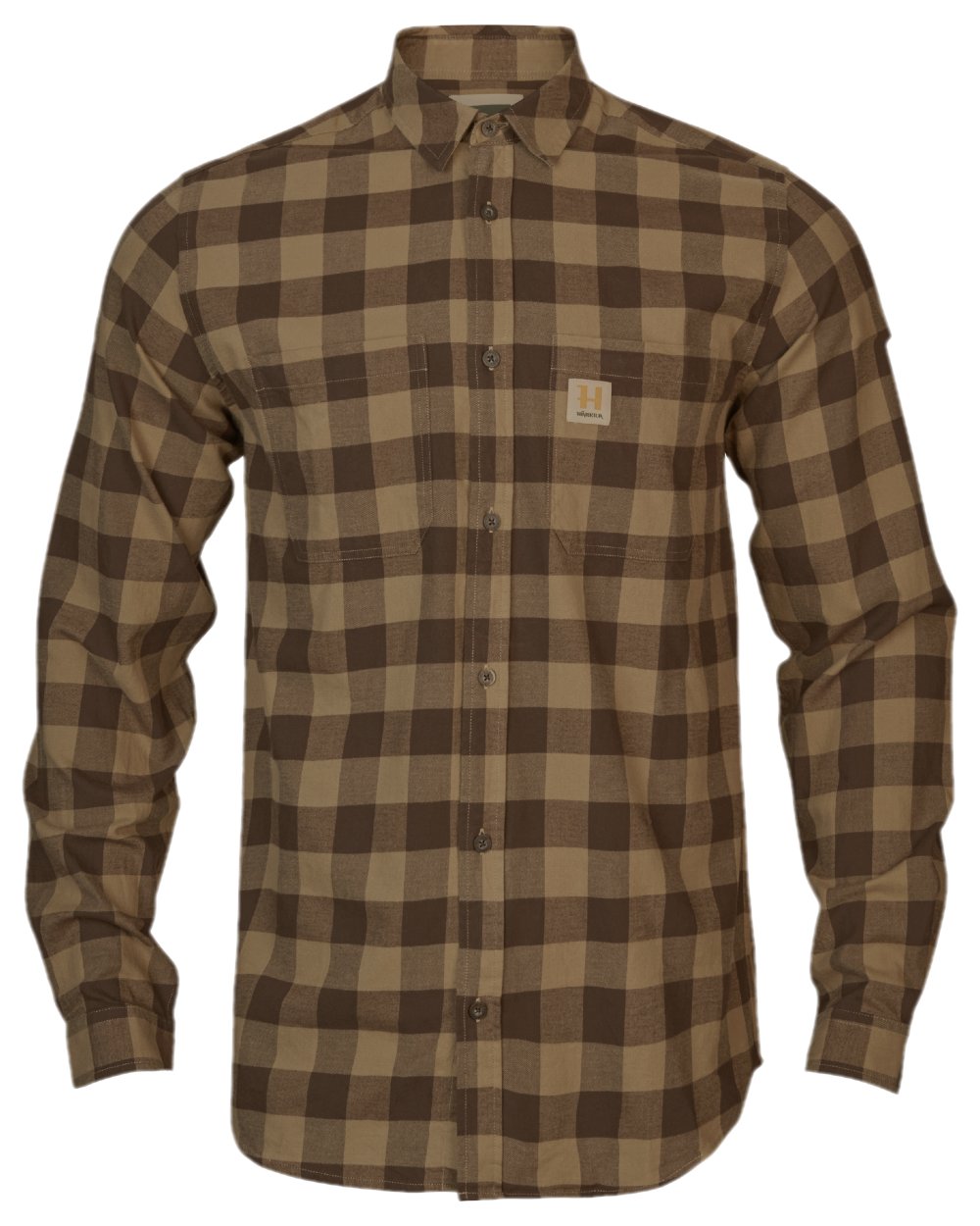 Antique Bronze Check Coloured Harkila Scandinavian Long Sleeve Shirt on white background