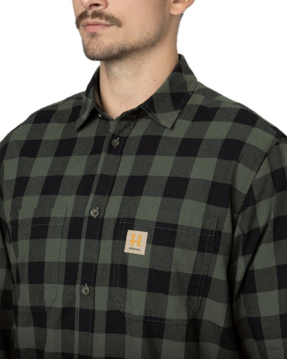 Green Check Coloured Harkila Scandinavian Long Sleeve Shirt on white background