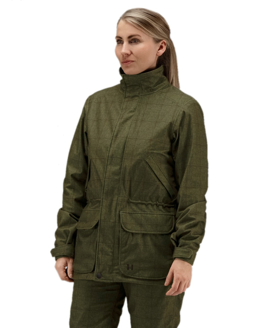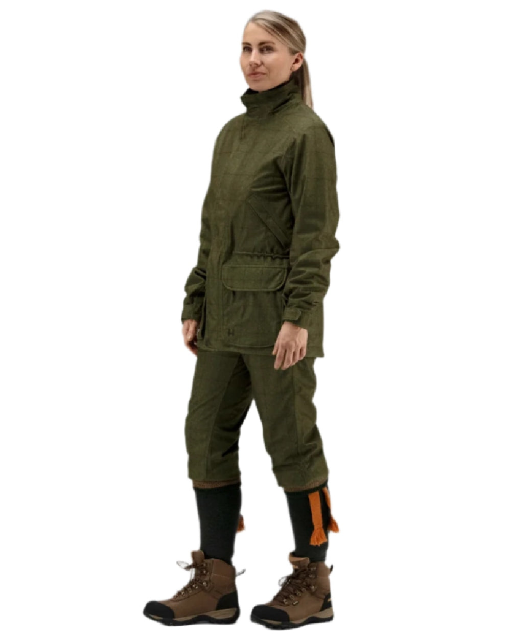 Very much the classic country jacket, the Stornoway Shooting Lady offers a high technical specification alternative to traditional tweed. Harkila branded throughout.