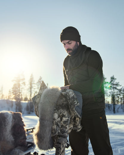 The Trygve neck gaiter offers lightweight warmth for outdoor enthusiasts. Made from soft fleece with an adjustable collar, it ensures comfort and dryness. Features flat seams and easily fits in pockets.