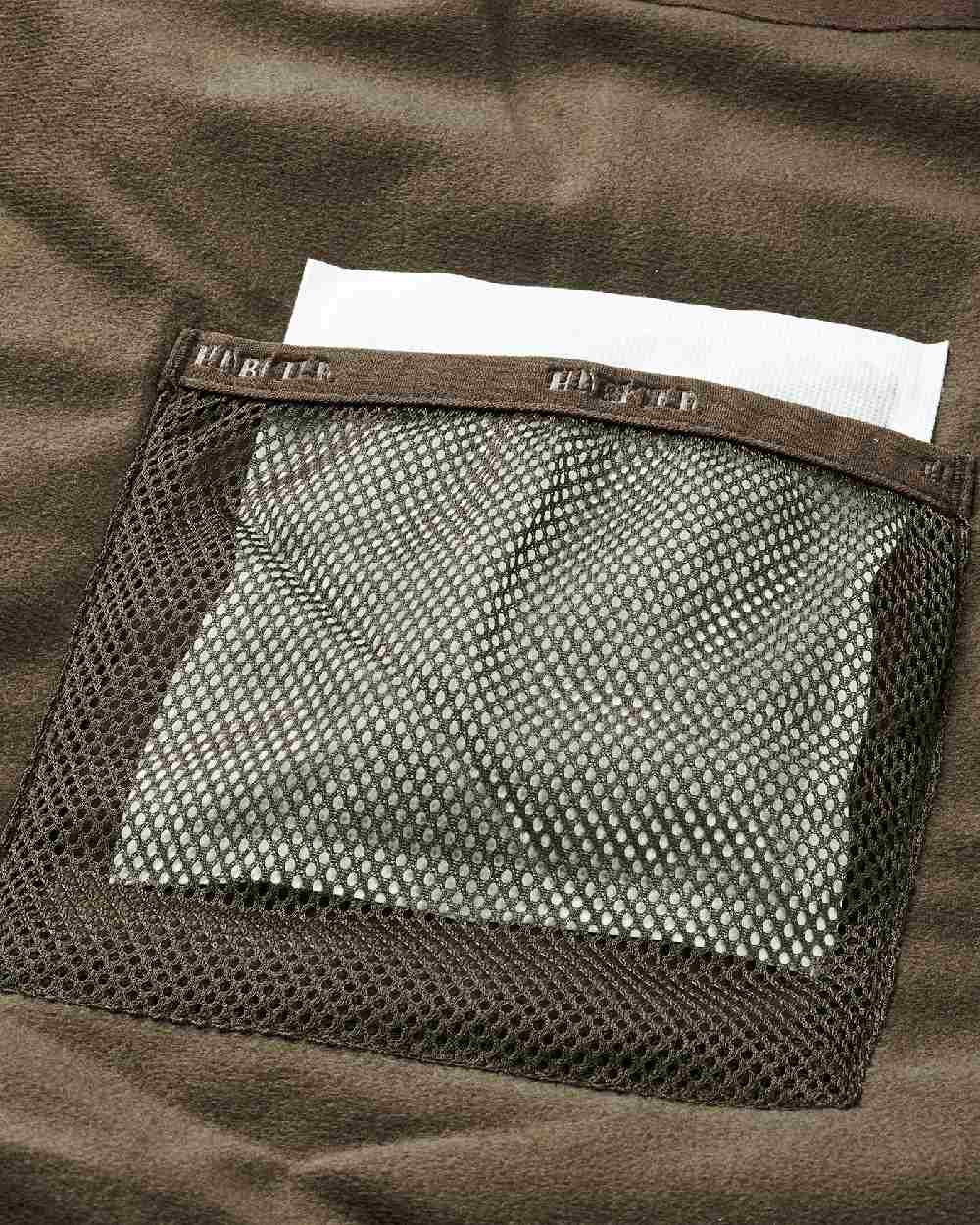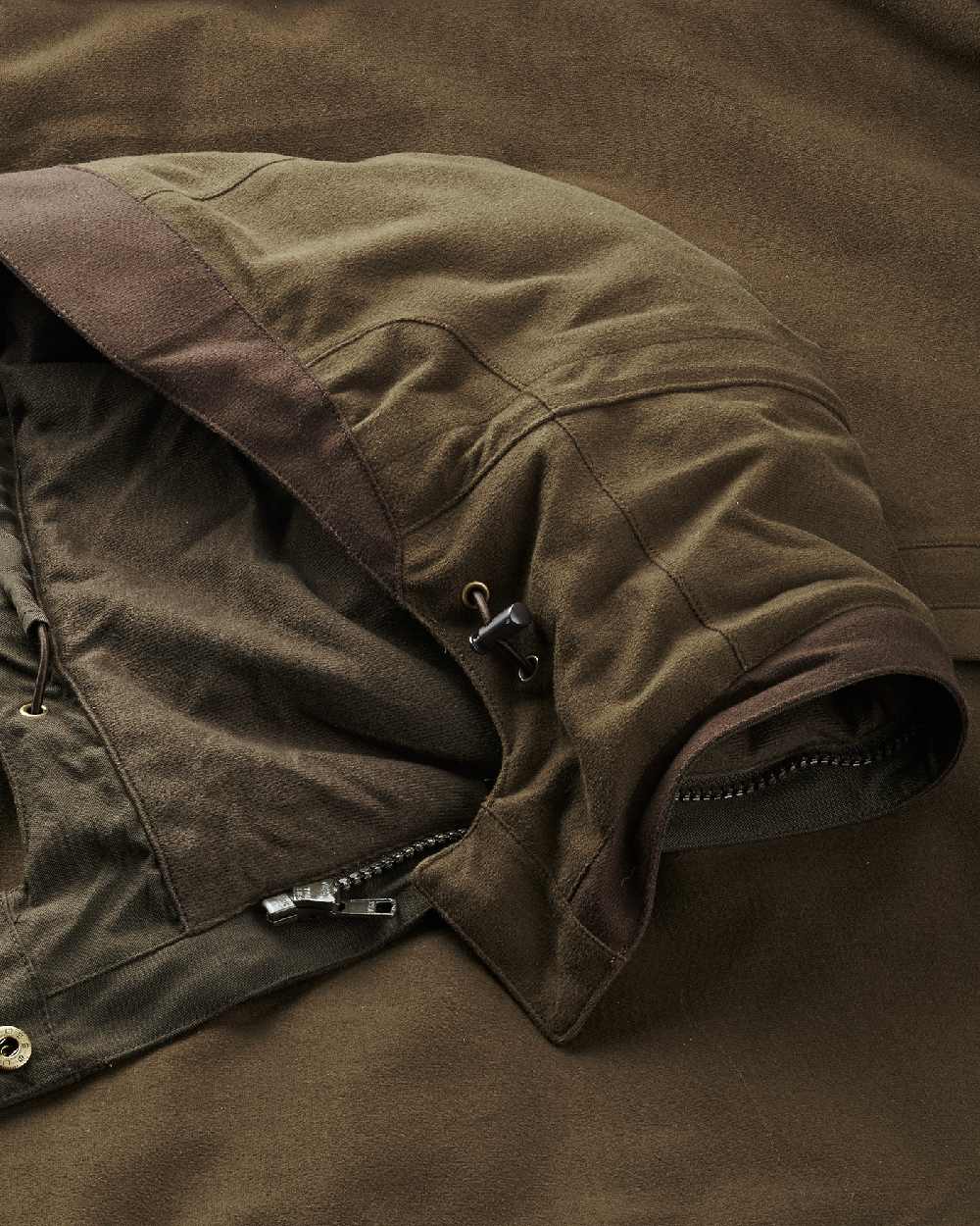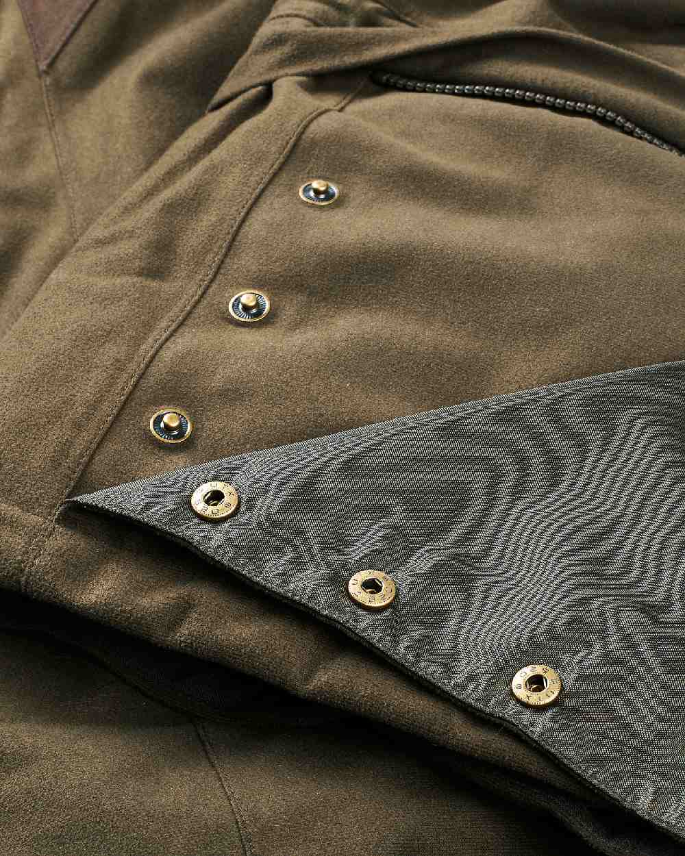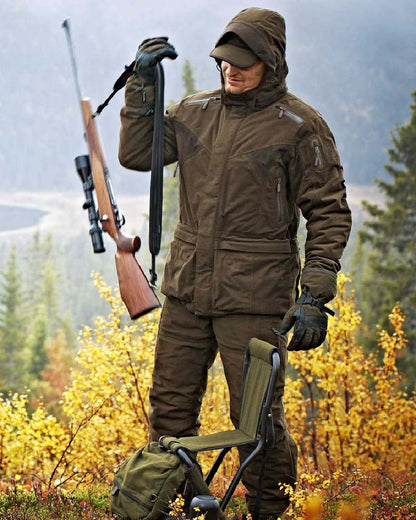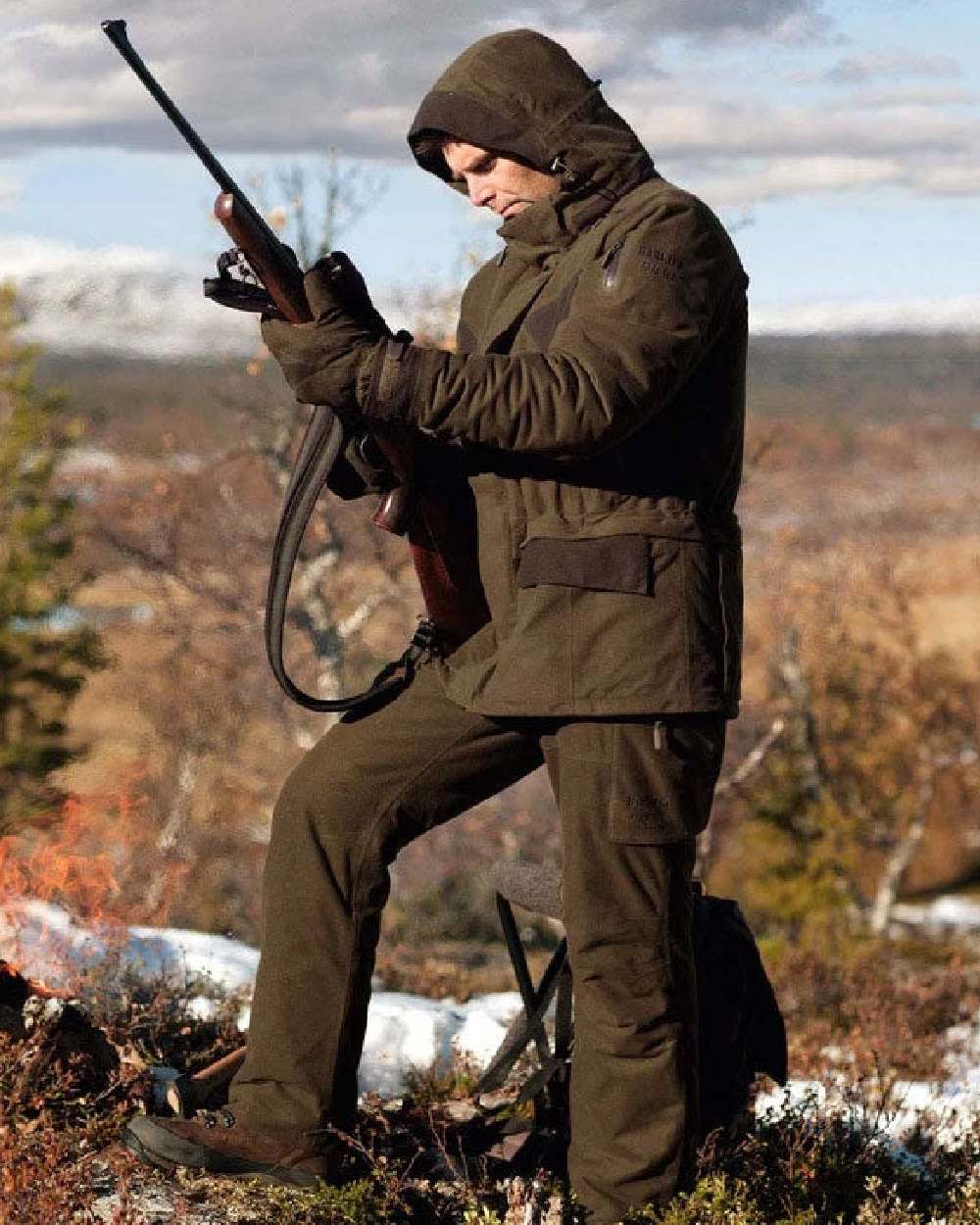 Numerous well thought out details that ensure every challenge encountered in winter hunting has been taken into account. Magnetic buttons on the front so the jacket can be easily opened without removing your gloves and a game pocket that can be folded out and used as a seat cover. This jacket has lined pockets, a pocket with an orange reflective hi-vis safety signal band on the shoulder, radio pockets, pockets for heating pads in the back.