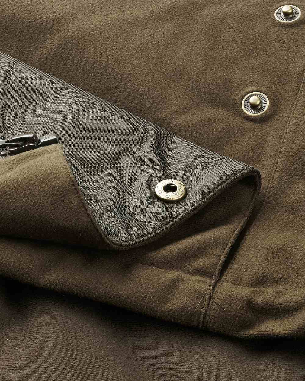 The outer is a tough and durable, soft to touch, brushed fine weave polyester tricot, with the look and feel of moleskin.