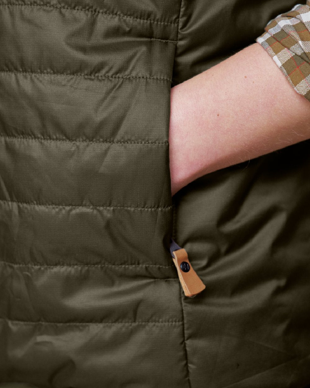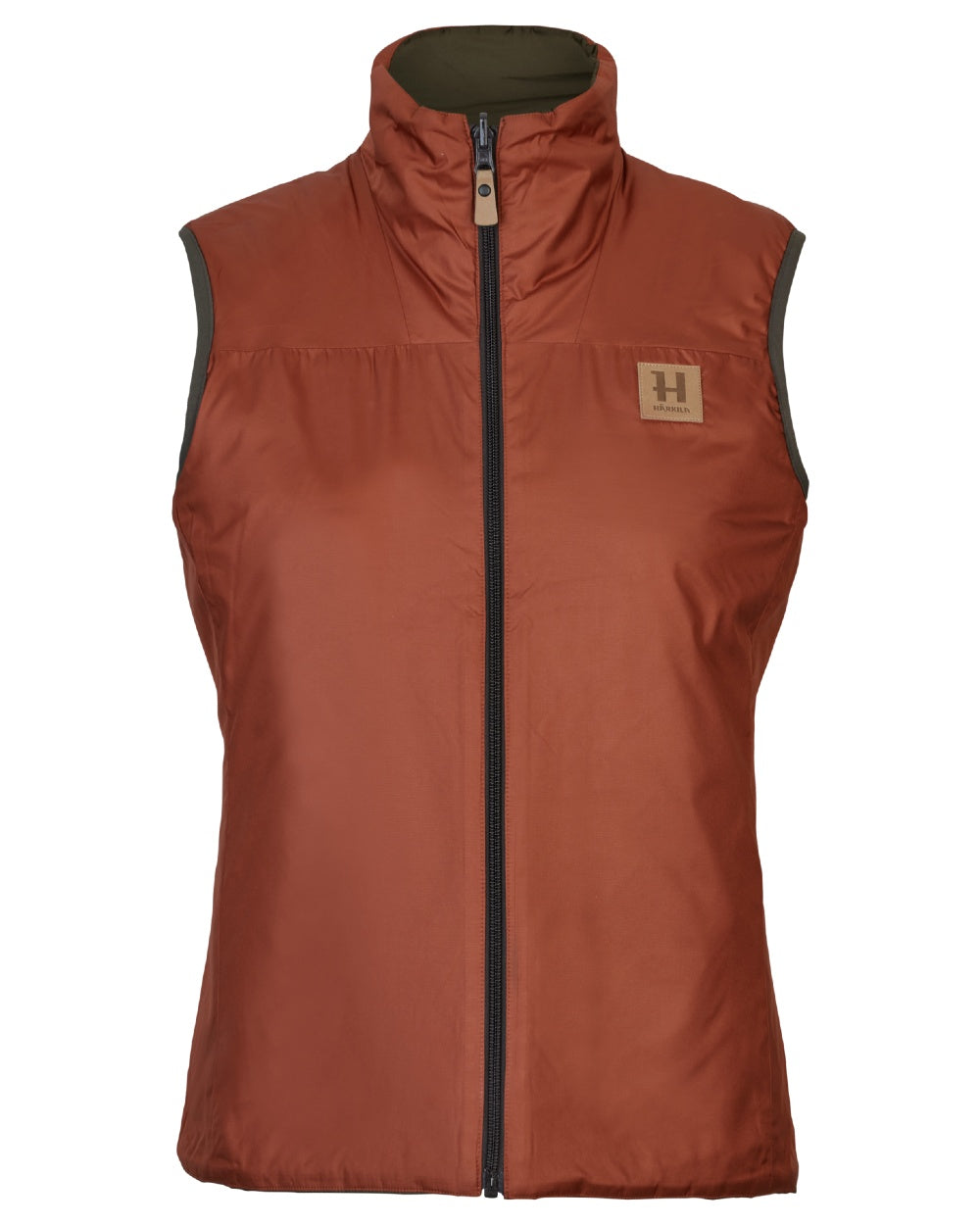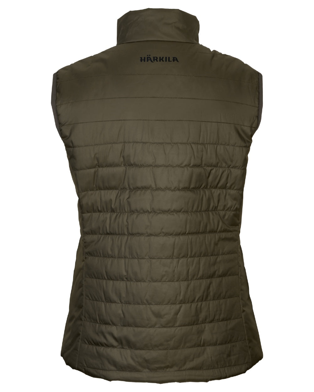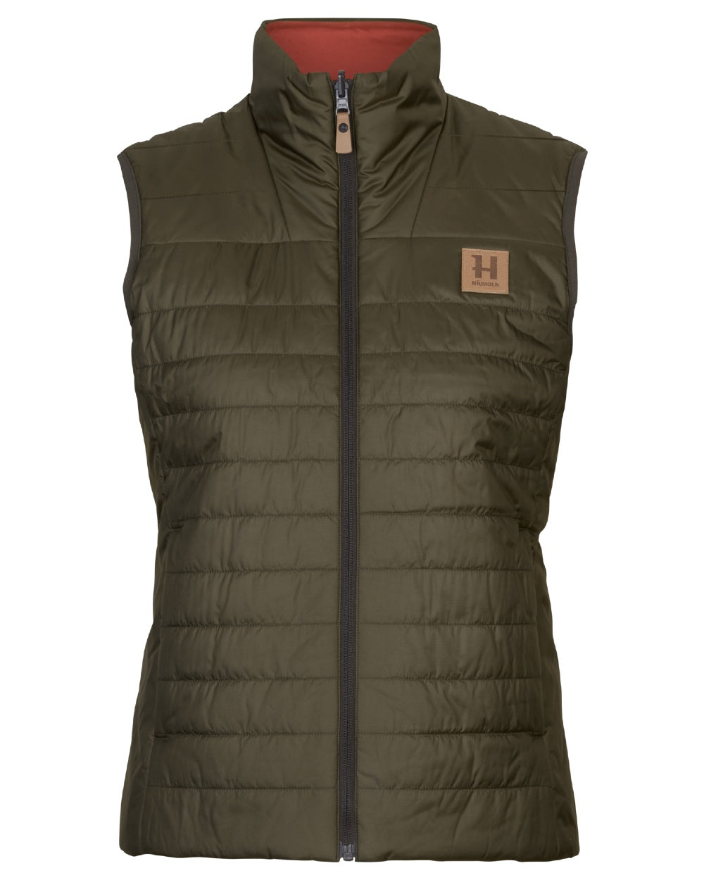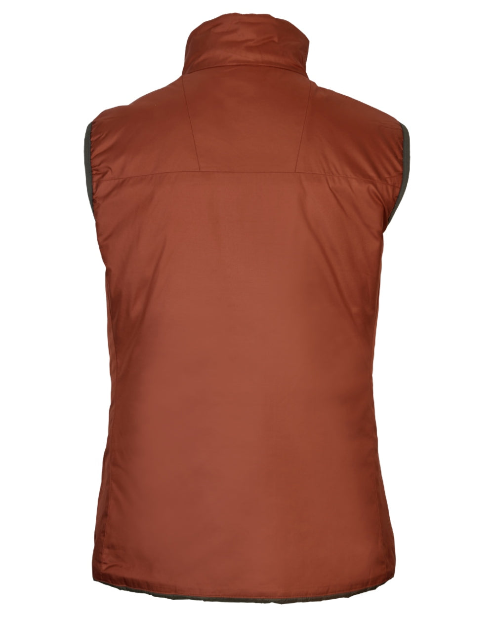 Stay warm and adaptable with the Härkila Kalix HSP Waistcoat for Women. Its lightweight, Thermo Poly Shield™ Fill reduces bulk while providing essential warmth. An HSP® membrane blocks out wind for added comfort. With a reversible design featuring quilted Willow Green and Arabian Spice, it seamlessly transitions from a functional mid-layer to a stylish standalone vest.