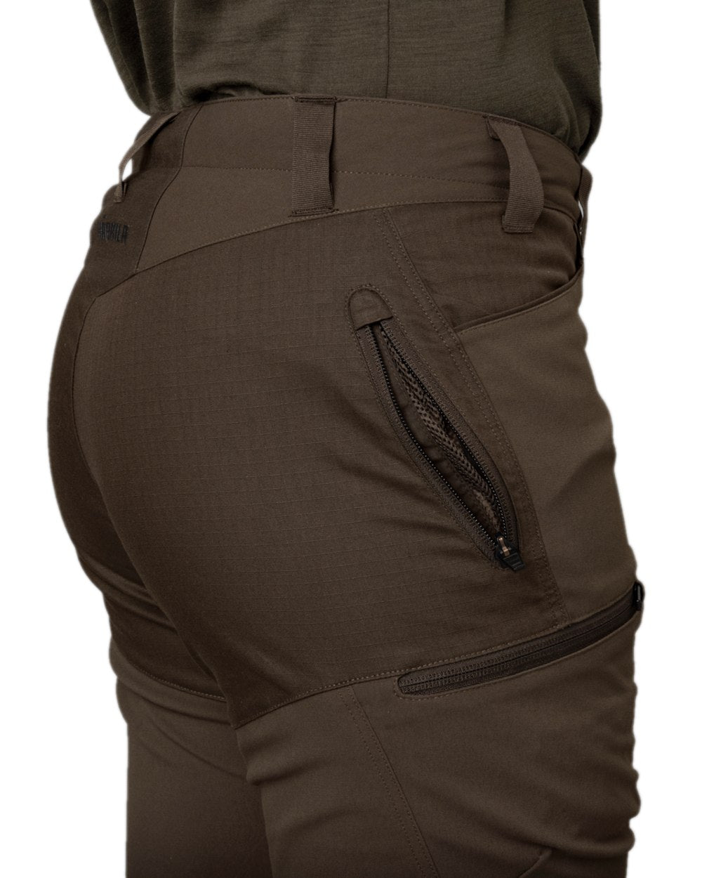 The Runa pants are made of 96% nylon and 4% elastane and is flexible and water-repellent by DWR treatment. Ventilation zippers with mesh fabrics, zip pockets, including a cartridge holder, and reinforced ankles ensure functionality and durability. Additional features such as knee adjusters and D-ring for the equipment ensure reliable performance during active use. The waistband is provided with an anti-slip silicone strip, so that the pants stay in place.