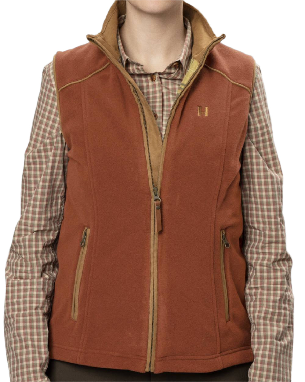 Arabian Spice Coloured Harkila Womens Sandhem 200 Fleece Waistcoat on white background