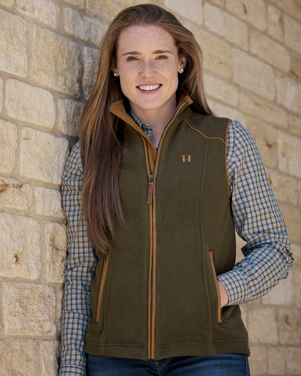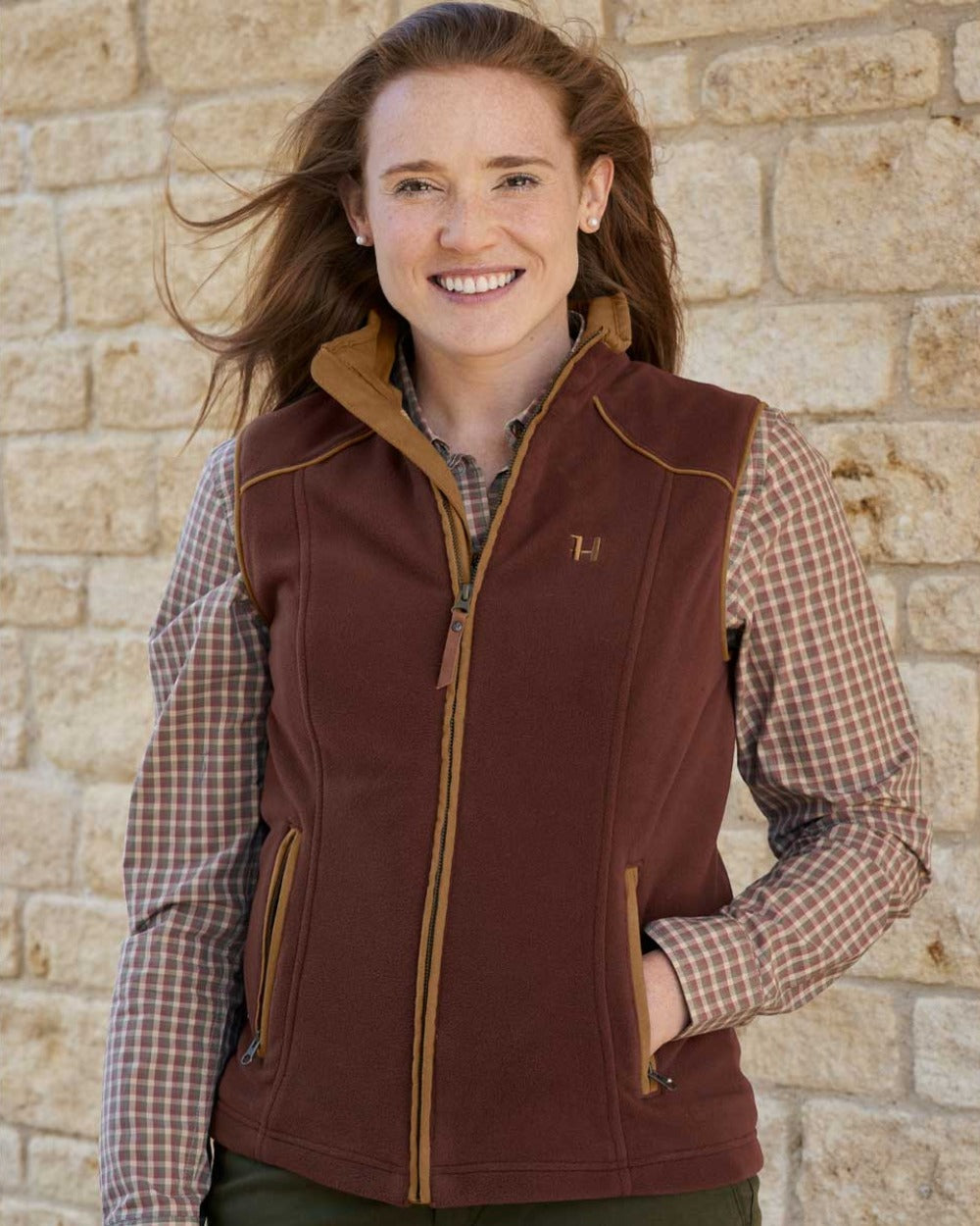 Functional & stylish waistcoat for women. Full-length zip with leather pull and wind-resistant check lining. Perfect for shooting and countryside walks made with the women figure in mind in order to ensure the perfect fit.