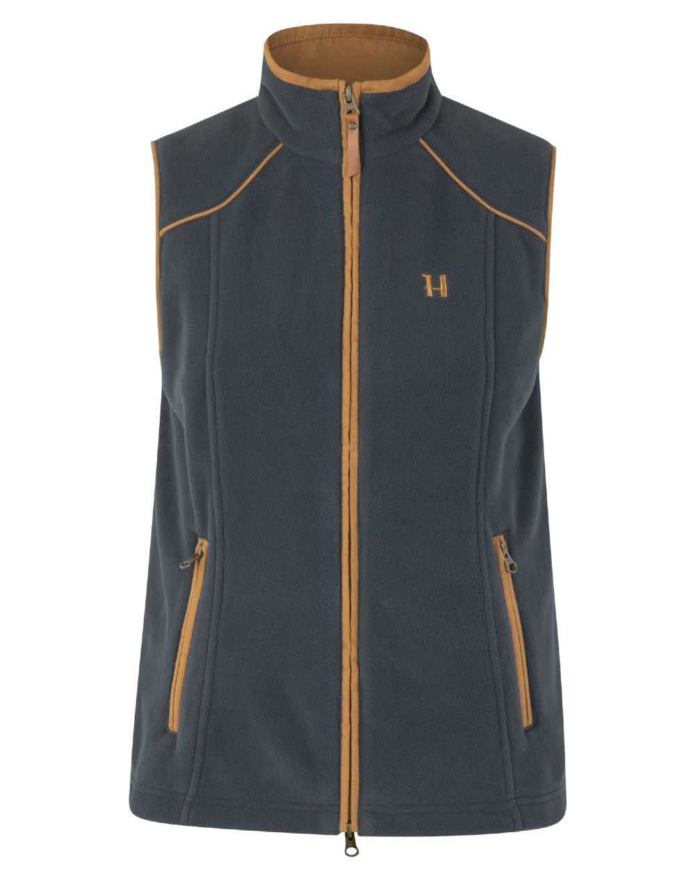 Dark Navy Coloured Harkila Womens Sandhem 200 Fleece Waistcoat on white background