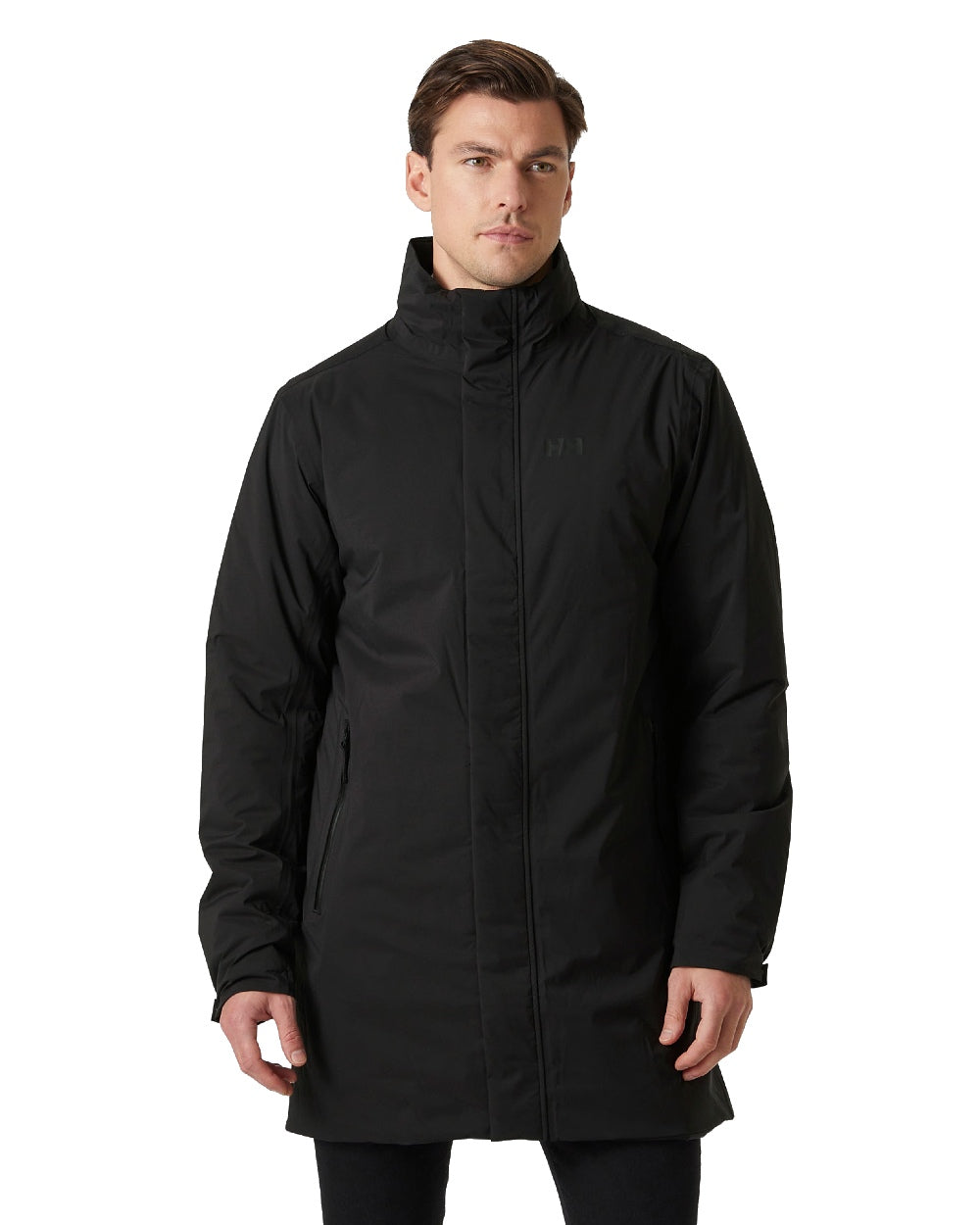 Black Coloured Helly Hansen Mens Urban Pro Insulated Raincoat on white background