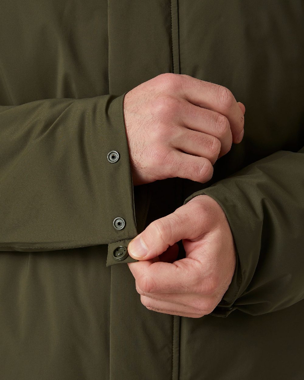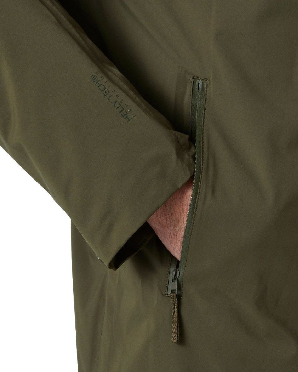 Utility Green Coloured Helly Hansen Mens Urban Pro Insulated Raincoat on white background