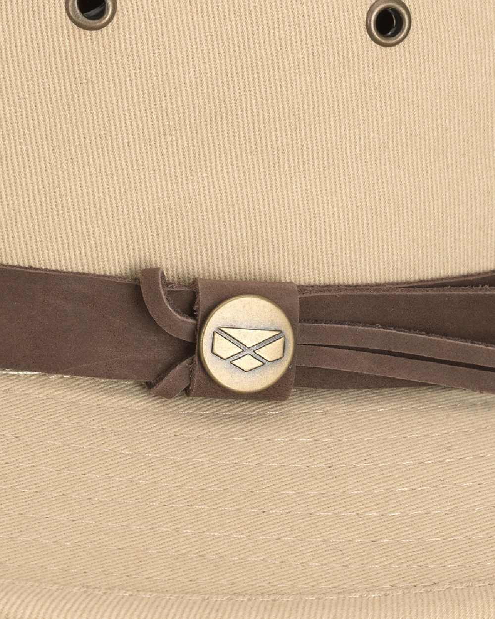 The Hoggs of Fife 'Panmure Foldable Hat' combines elegance with endurance, offering a durability that will set you up for any expedition. With a brim to protect from the sun, a ventilated crown and a stylish, studded band, the foldable quality and an accompanying drawcord bag make this an excellent, practical hat for Summer!