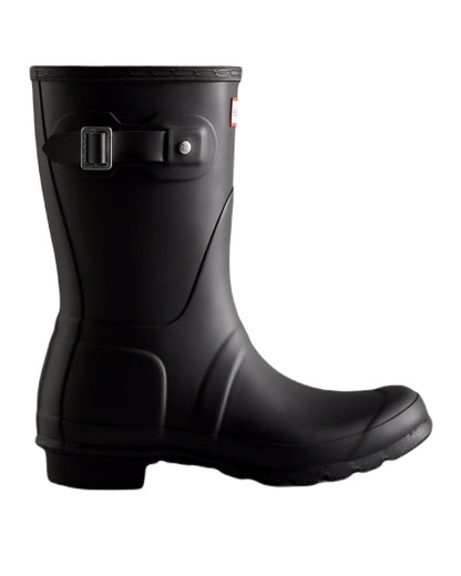 The Men's Original Short Wellington Boot takes the iconic design of the Tall Boot and scales it down for a versatile and comfortable style. From jeans to chino's, styling is easy thanks to the mid-calf height. Formed of natural rubber, each boot is handcrafted and assembled over three days before being vulcanised for superior protection. Featuring the Hunter Original tread pattern, and a comfortable polyester lining, this classic navy waterproof boot is an everyday essential.