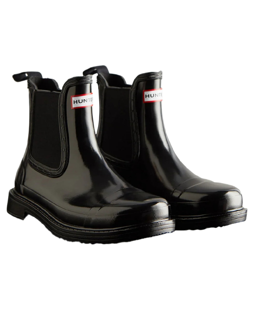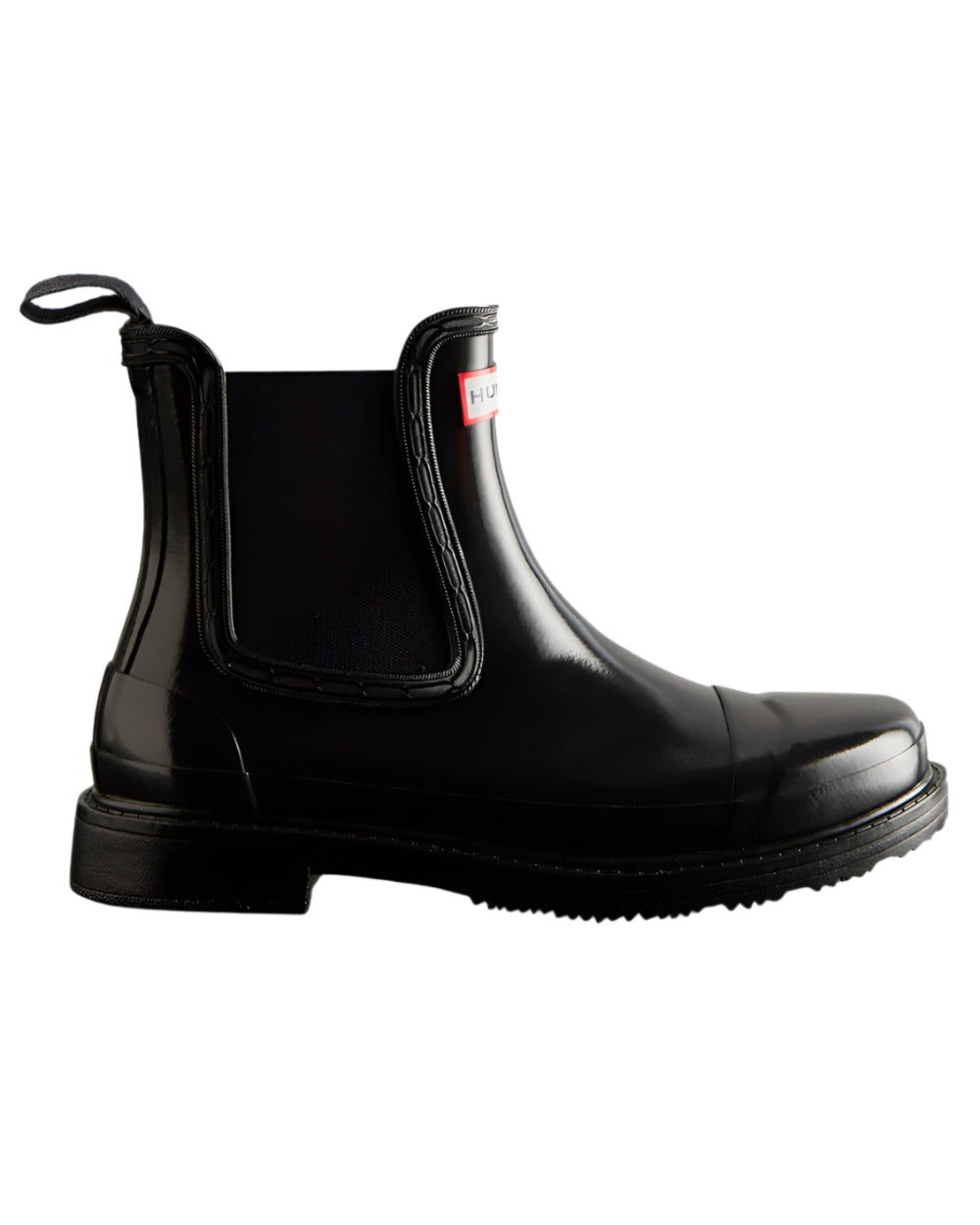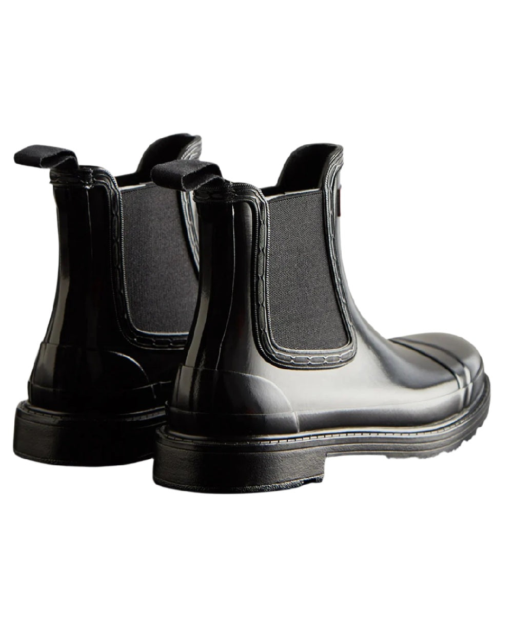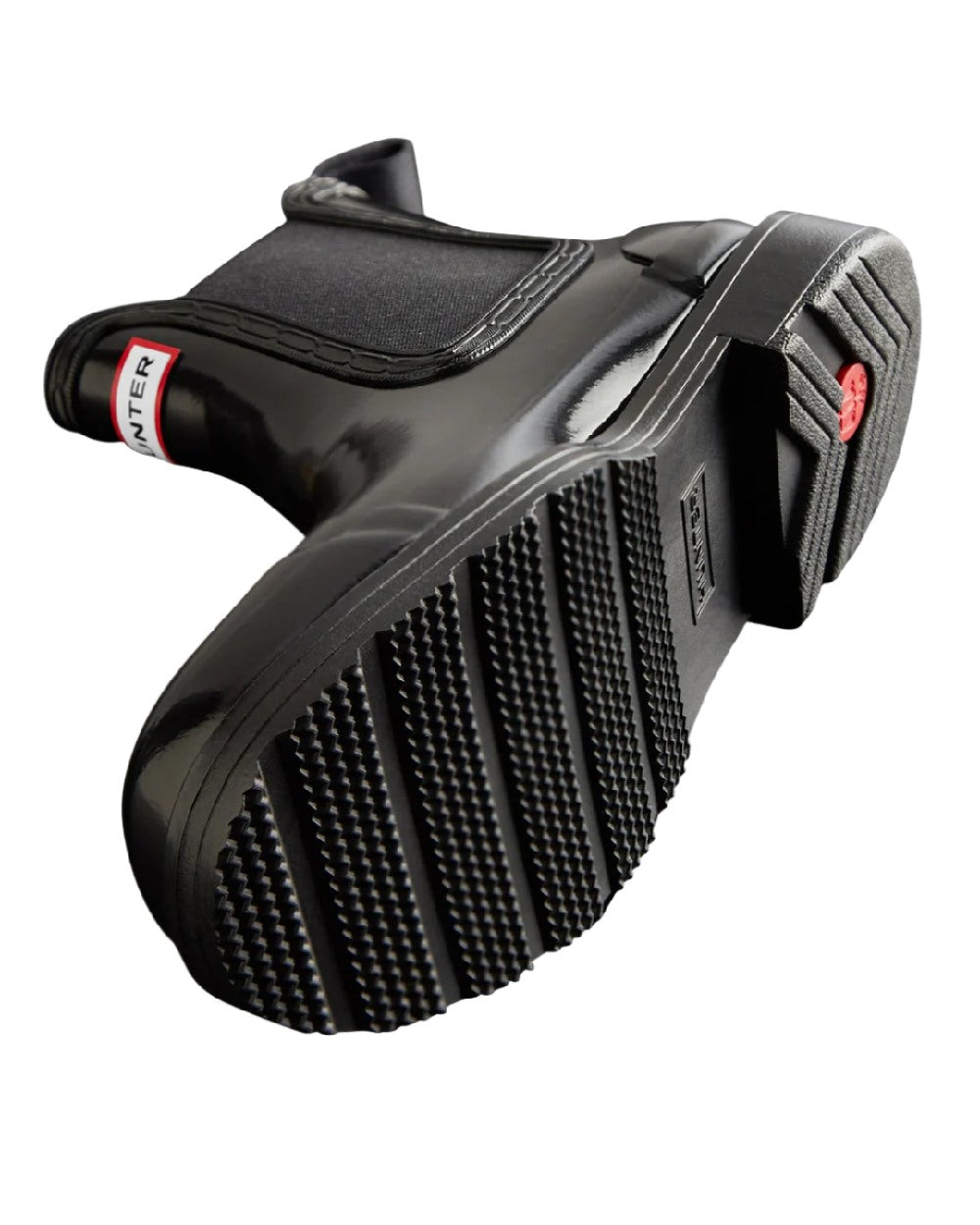 Crafted from natural FSC®-certified, vegan rubber, the 100% waterproof Commando Chelsea is a new addition to our iconic Original collection. Retaining all the beloved features of the Original Gloss Chelsea Boot, like the flexible gusset and Hunter grip, this new silhouette has a higher profile, reaching 15mm further up the leg. This black gloss women's commando Chelsea hybrid style also features an updated recycled polyester lining and insole.