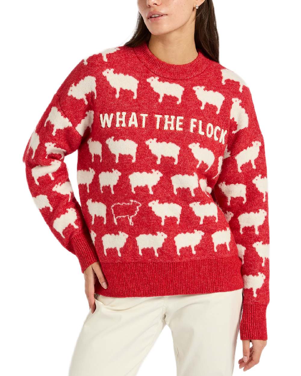 This charming and slightly cheeky wool blend sheep jumper has been designed to make a statement. Super soft , easy to wear and care for it's a feel good knit that packs a serious style punch. If you're looking to shake up your collection of knits, this new style will tick all the boxes. Perfect to wear with jeans and boots or with white trousers and neck-tie blouse at a a country show. Crew neck Deep ribbed hem and cuffs Iconic sheep design and slogan.