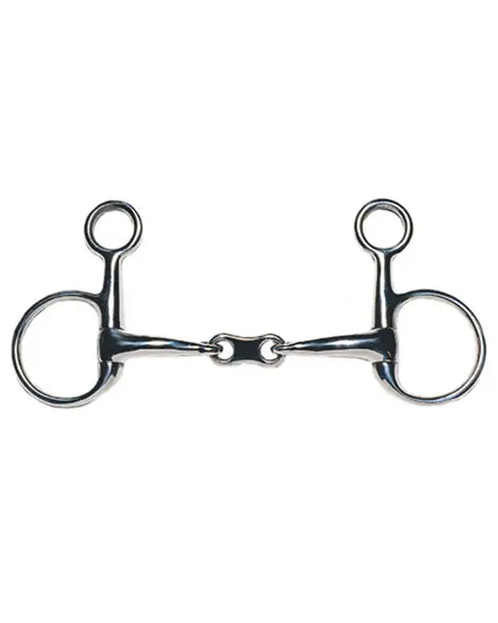 Curved bit to reduce the "nutcracker" action and to alleviate pressure on the tongue and bars of the mouth. Prevents contact with the roof of the horses mouth. The arms of the Baucher and the fixed rings act to stabilize the bit and work in a very similar way to an eggbutt snaffle, offering a consistent contact and preventing the bit from sliding through the horses mouth. Ideal for horses that tolerate very little bit movement in their mouths. French link offers independent control over two sides of the mouth.