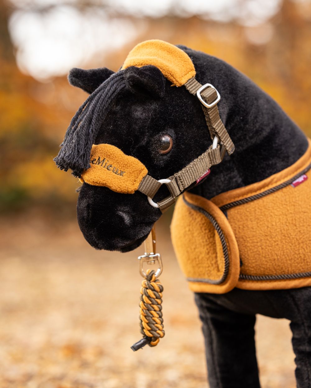 A perfect toy version of the LeMieux Vogue Headcollar. Includes fleece padded nose band and headpiece with intricate LeMieux embroidered branding, adjustable strap and even a matching lead rope, just like the real thing!