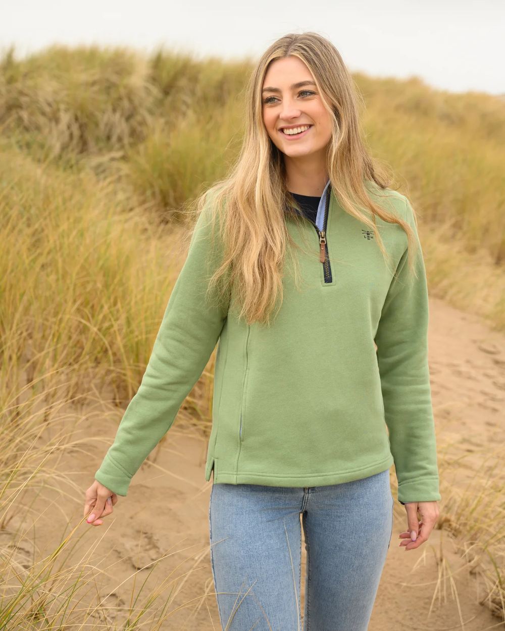 A quality women's half-zip sweatshirt.