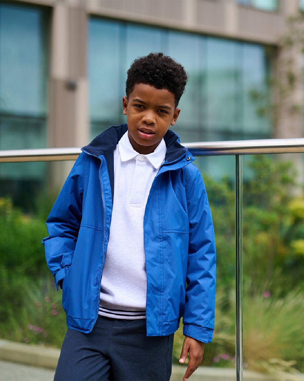 Regatta's best selling kids styles for school, it's made with Hydrafort 5000 fabric to keep showers at bay. It features a Symmetry fleece lining and added Thermo-Guard insulation in the sleeves. Plus a handy printed name label and fold away hood. Available in a range of unbrand school uniform colours, a great all-rounder for school days.
